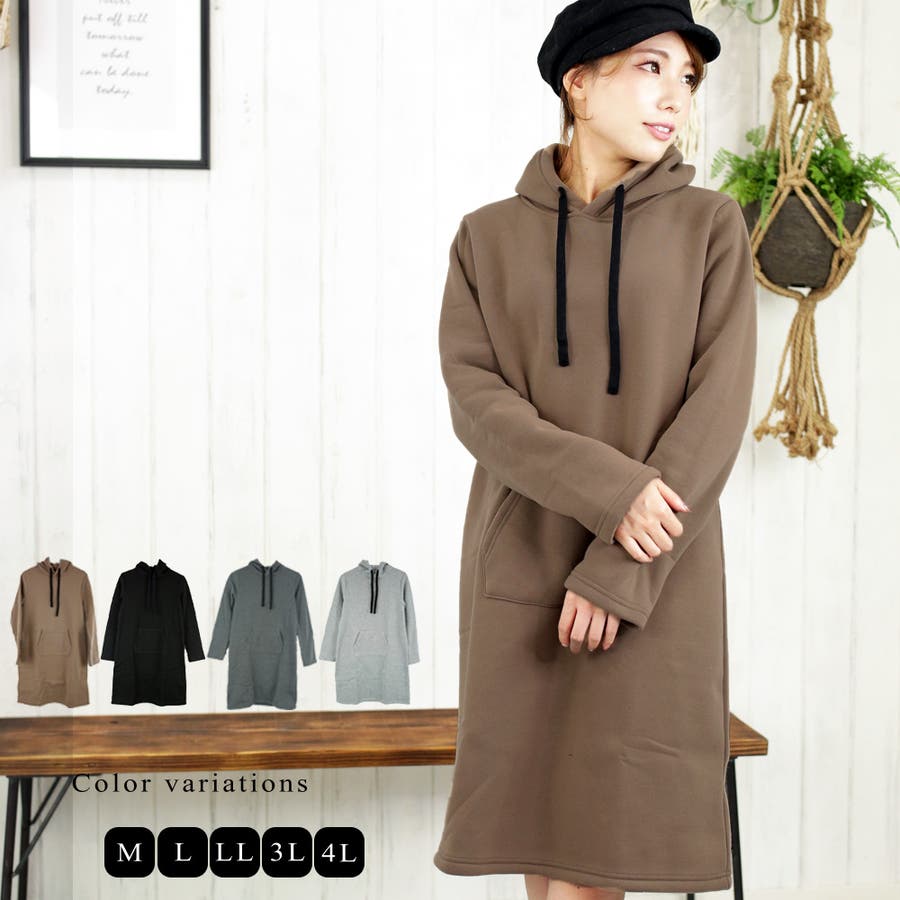 温かな裏起毛パーカーワンピース 大きいサイズ 部屋着