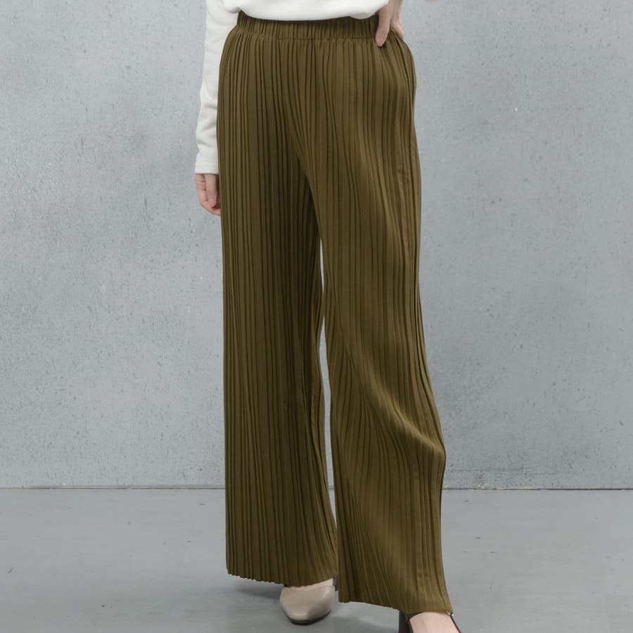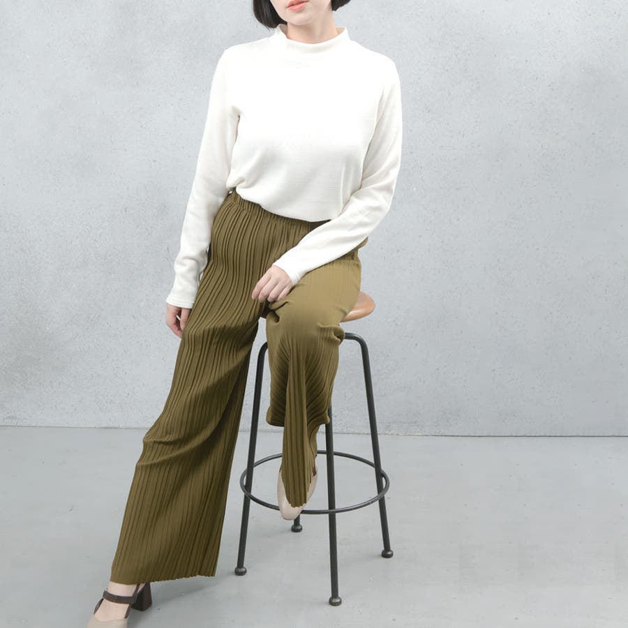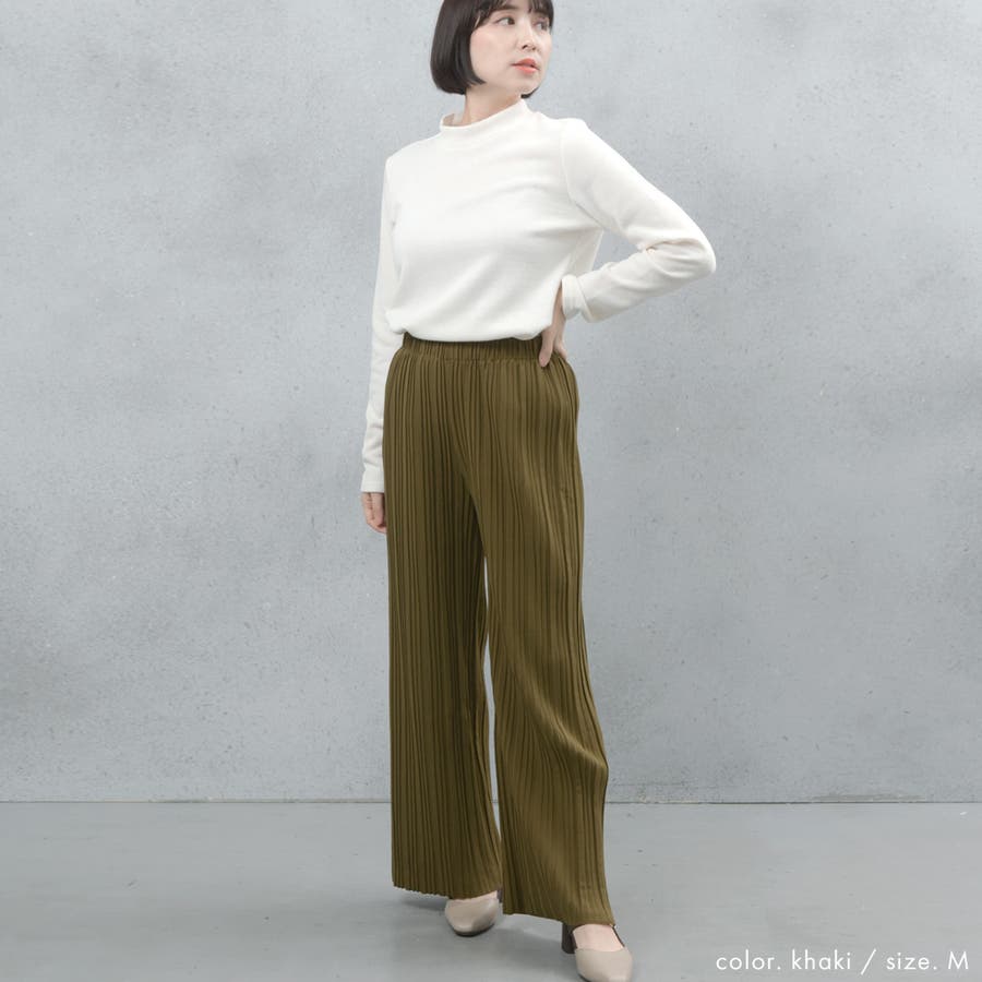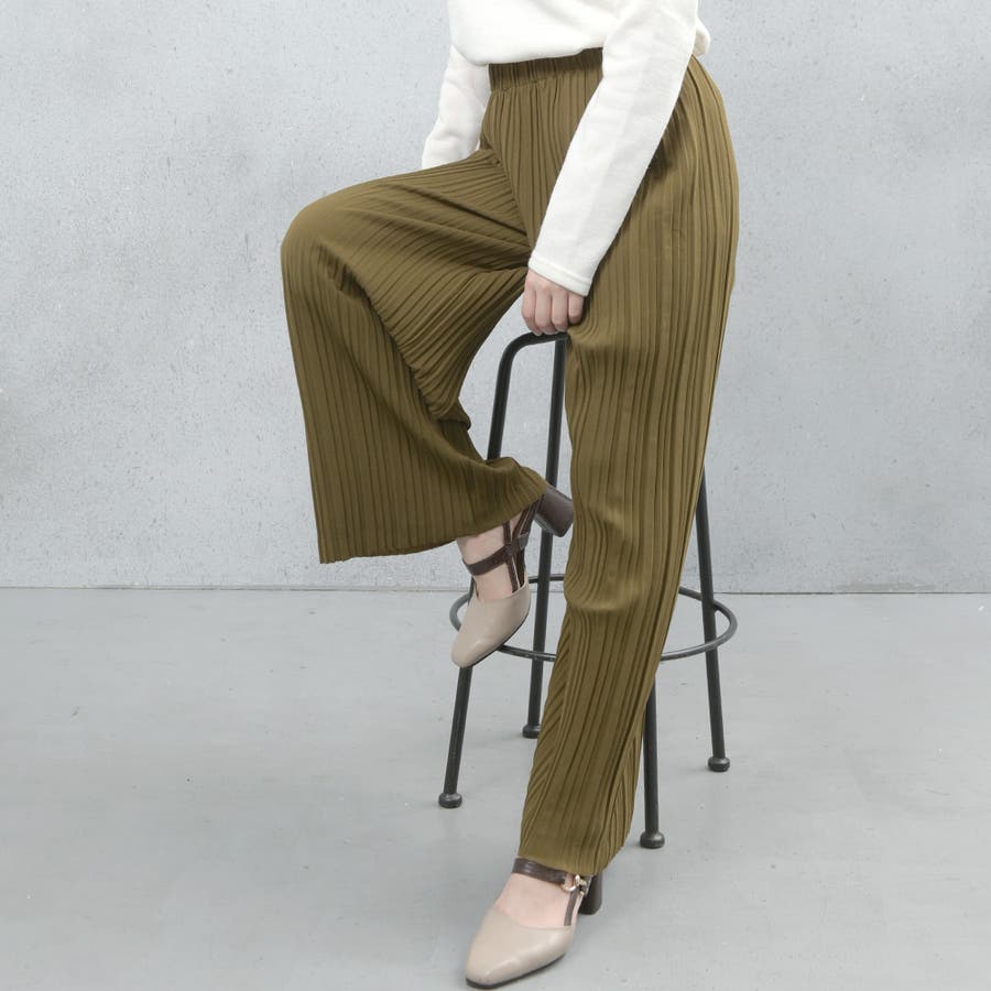 キレイ見えも叶うので着こなし広がるプリーツパンツです。