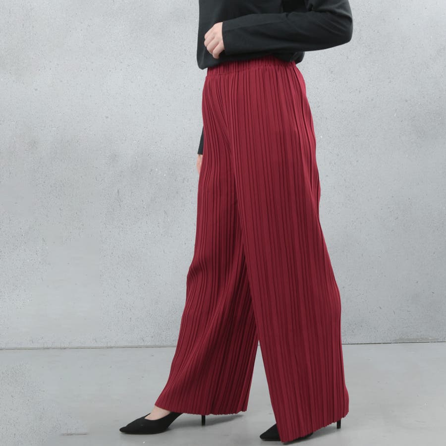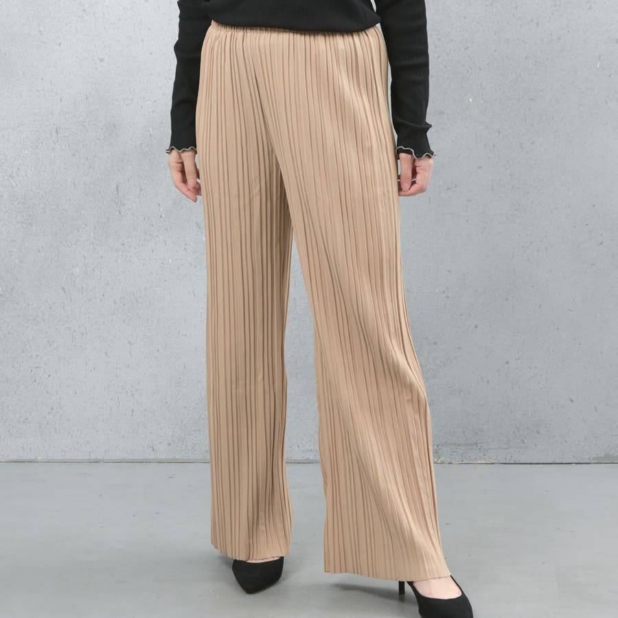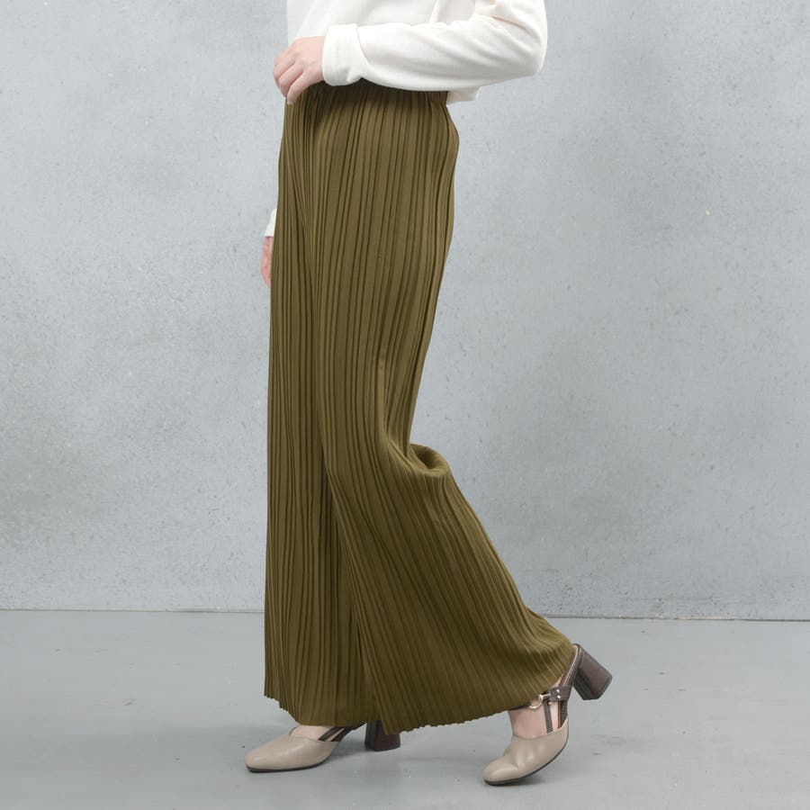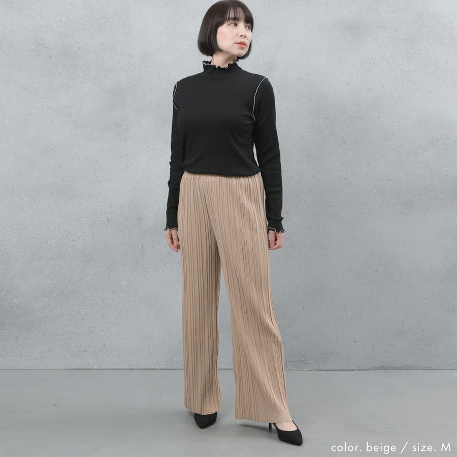 キレイ見えも叶うので着こなし広がるプリーツパンツです。