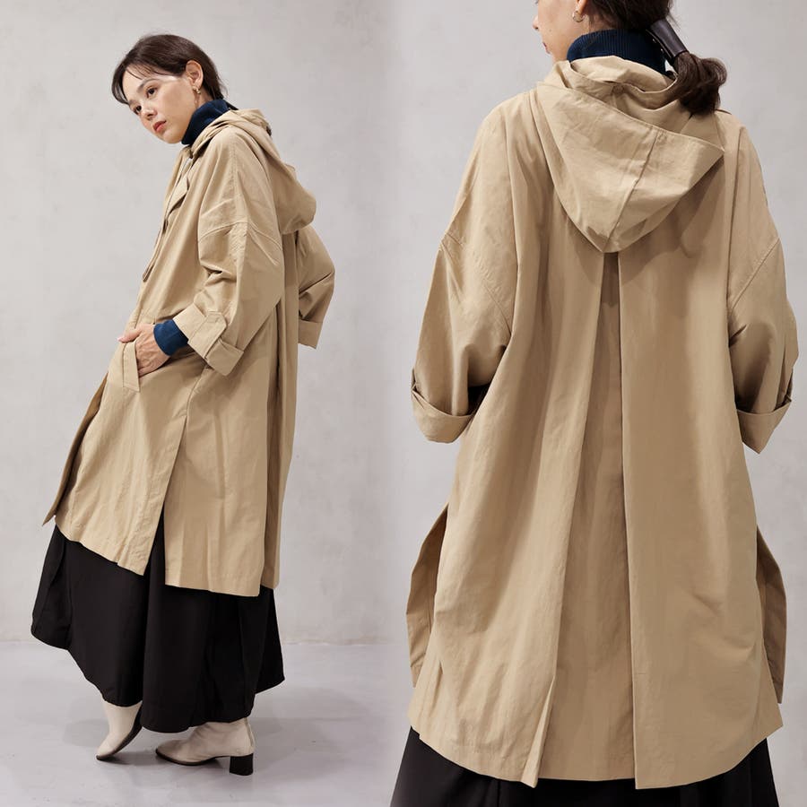 撥水とフードも気に入ったので購入しました。アメリカンホリックでした。Lしかなく普段MかLですが、たっぷりめだとは知りつつ、自分が腕長&肩幅もあり 寒がりでもあり色々着込む場合もあることも考えると、横幅はちと大きめでしたが、 丈も膝より長く私にはLでも大丈夫でした。ペラペラな生地でなくしっかりめで安っぽくなく良かったです!フードもボタン1つで取り外せて、 無しで着て、別に持ち歩きも出来て便利です。暖かめの日に早速着用しましたが、昼間は少し暑かった為 袖が捲れるデザインで、 そうしてみたら少し快適になりかわいくもなり、そんな部分も良かったです。真夏は暑そうですが 長い季節使えそうで買って良かったです。