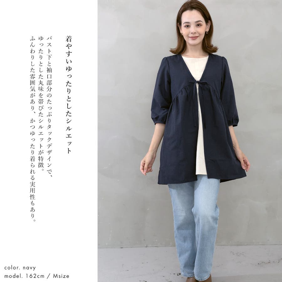 ウエストと袖口のたっぷりタックでゆったり着られます。
