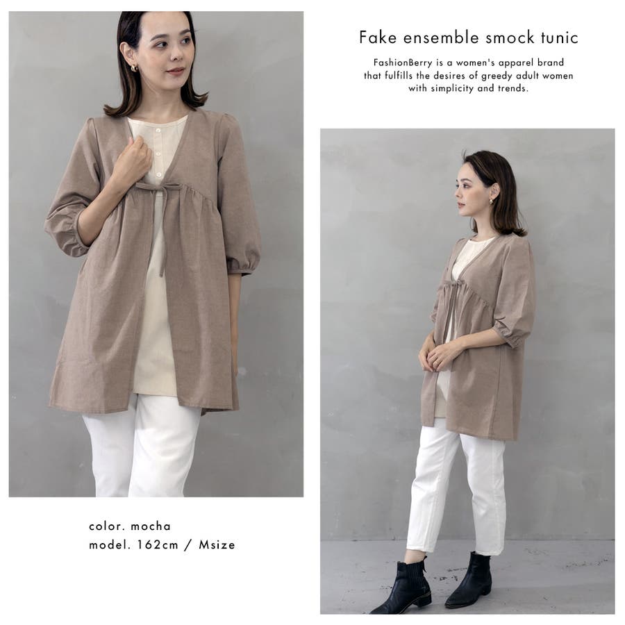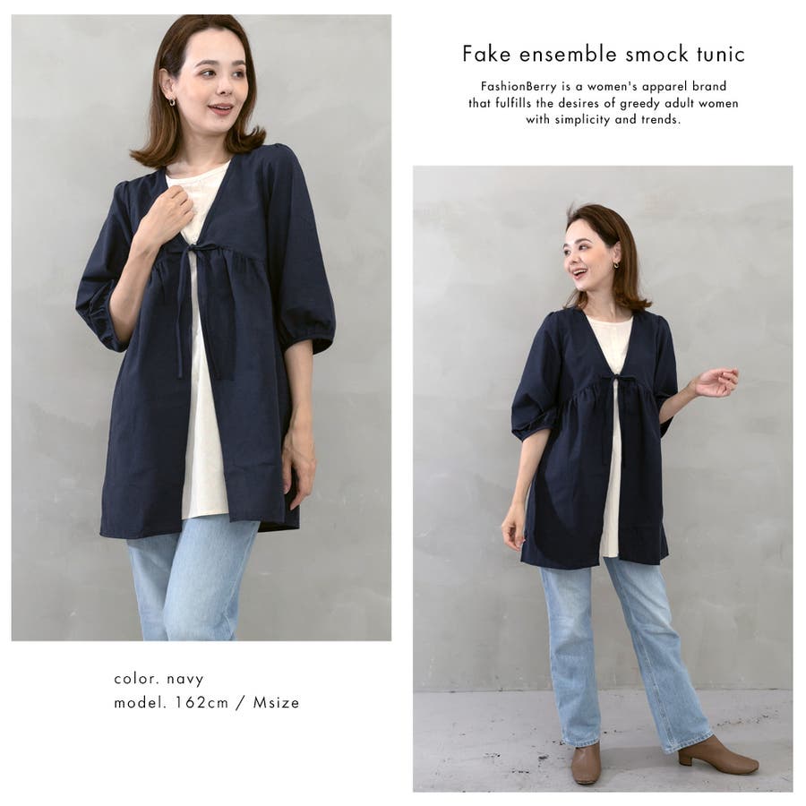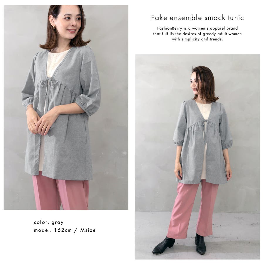 1枚でコーデが完成するフェイクアンサンブルスモックチュニックです。