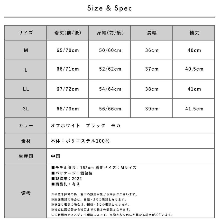 L:着丈(前/後)66/71 身幅(前/後)52/62 肩幅37 袖丈40.5