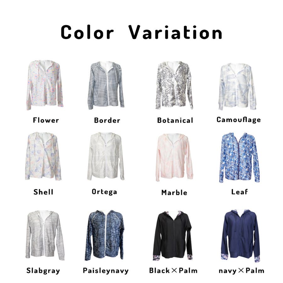 | カラー | フラワー / ボーダー / ボタニカル / カモフラ / シェル / オルテガ / マーブル / リーフ / スラブ / ペイズリーネイビー / ブラック×パーム / ネイビー×パーム |