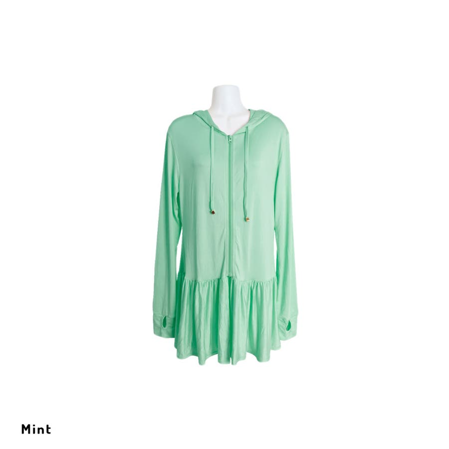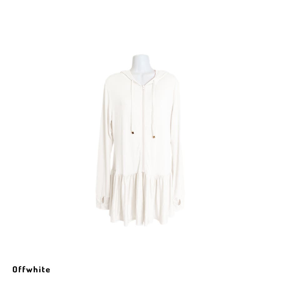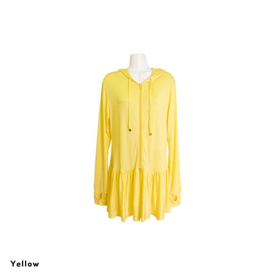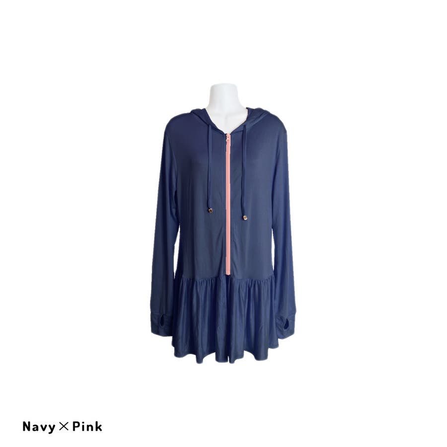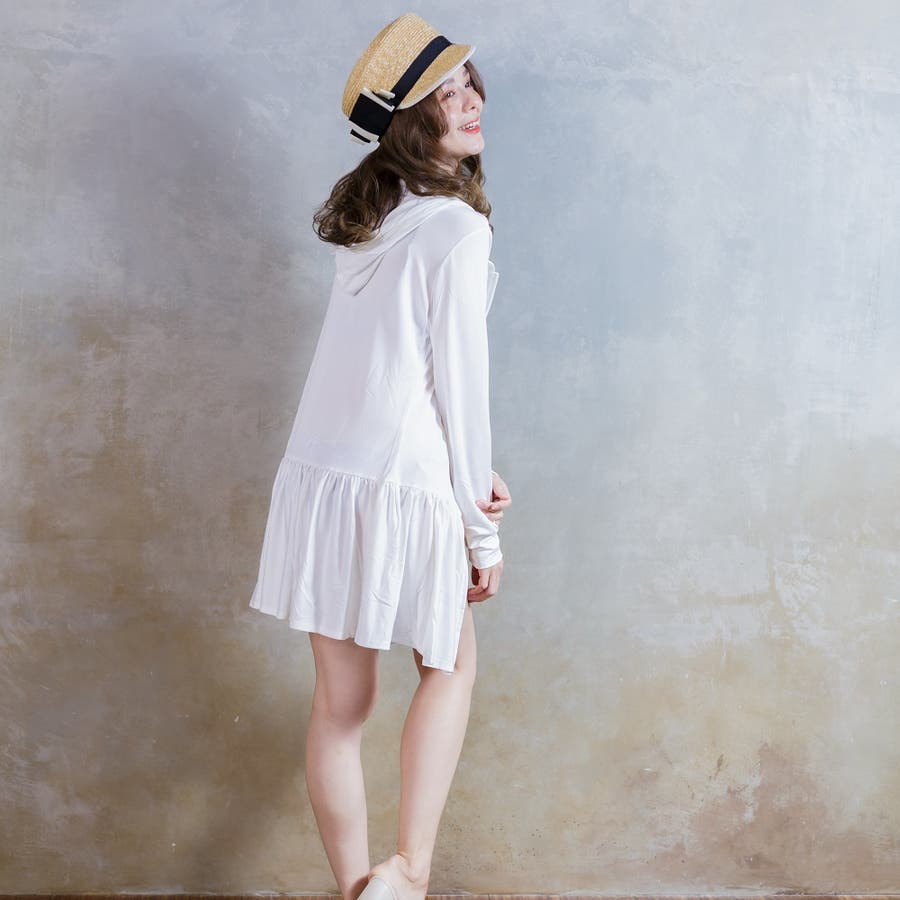 女性らしく体型カバーを叶えるフリル付きラッシュパーカー
