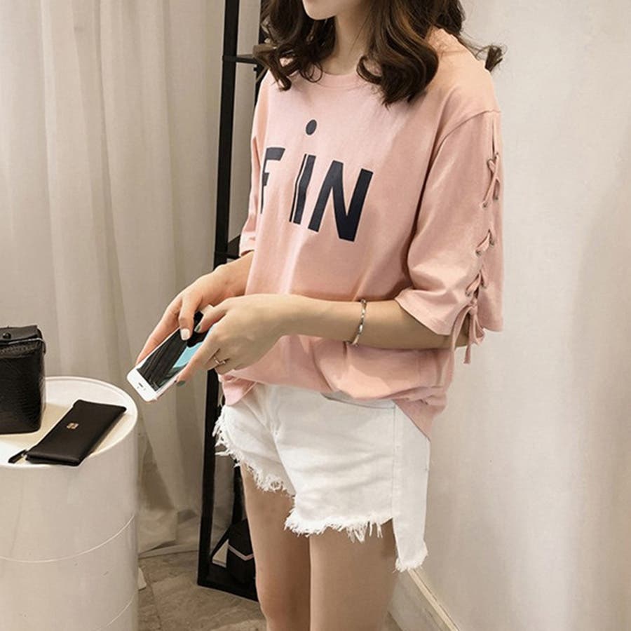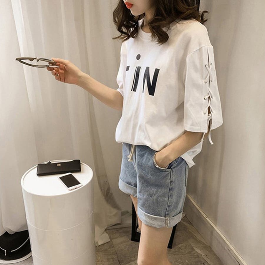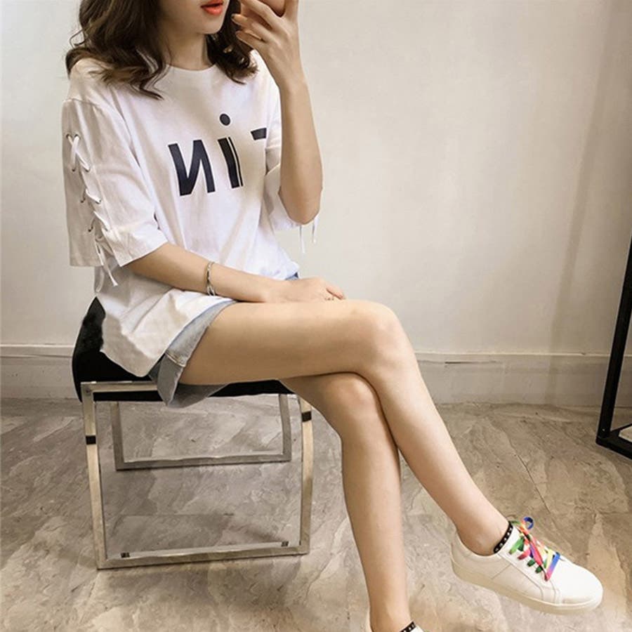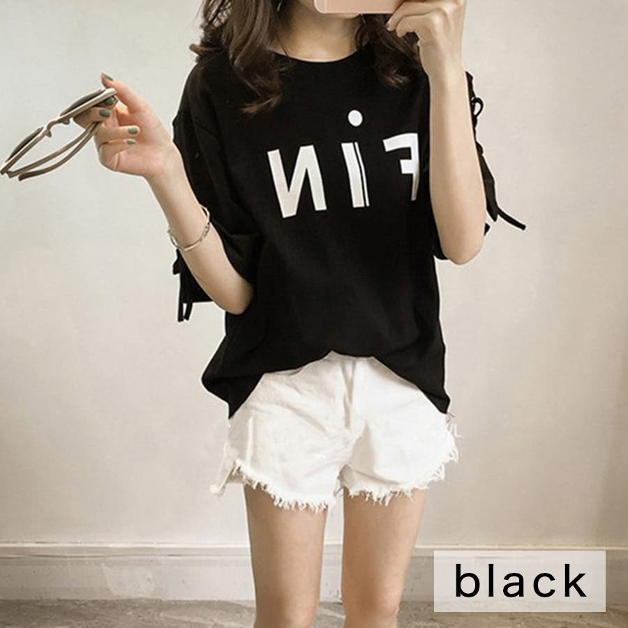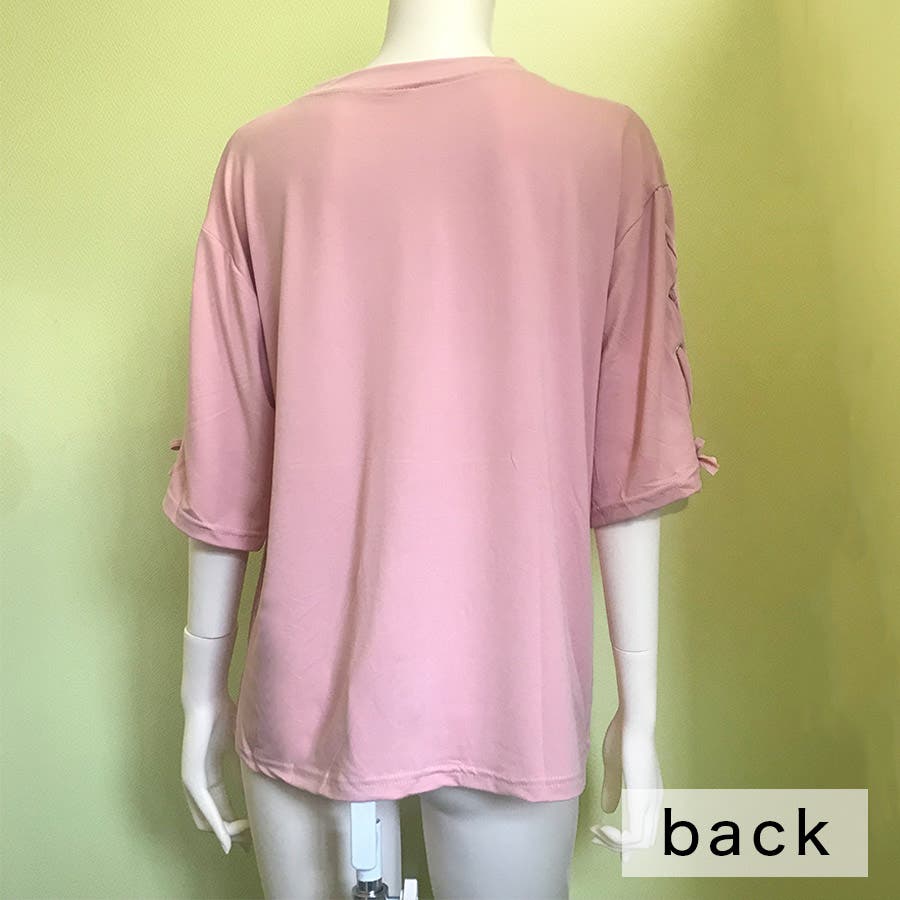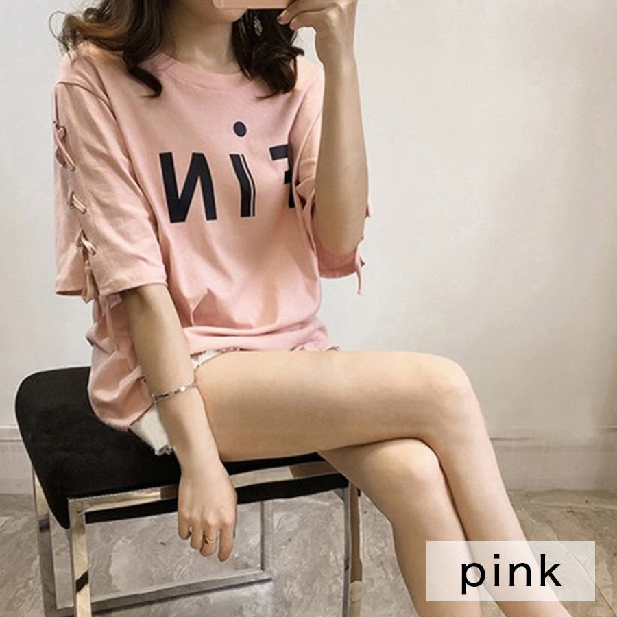 ゆったりとしたトレンドのビッグシルエットなのでタイトなボトムに合わせるだけでオシャレに決まります。レースアップデザインがさりげなく周りと差をつけられるオシャレなポイントです。テロンとした肌触りの良い生地は動きやすくシワになりにくいのが嬉しいポイント!ホワイトは透けるのでインナーの着用が必要です。