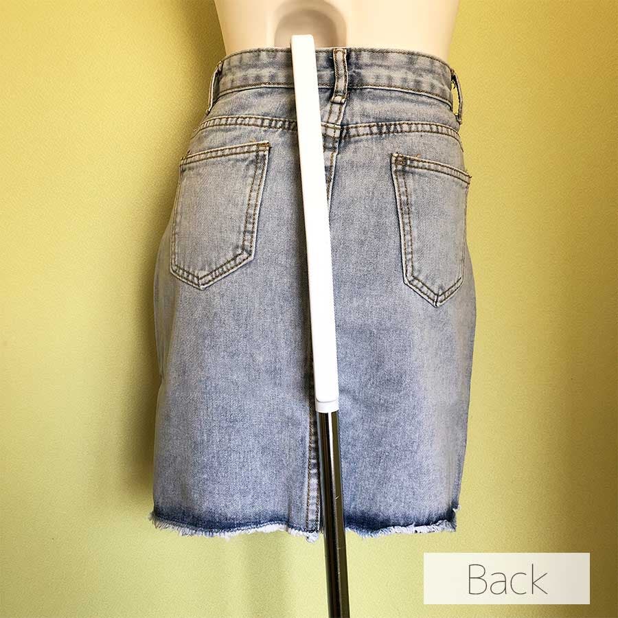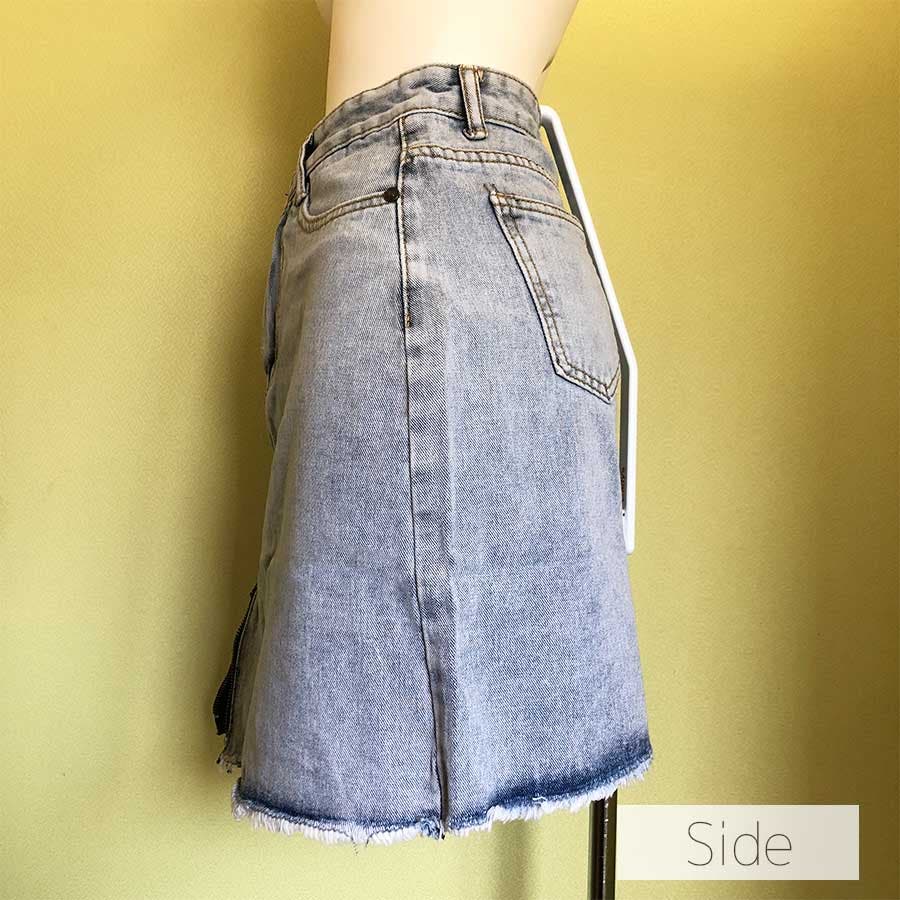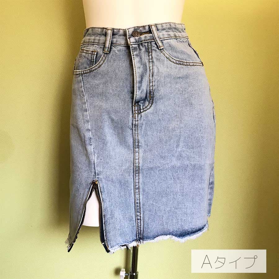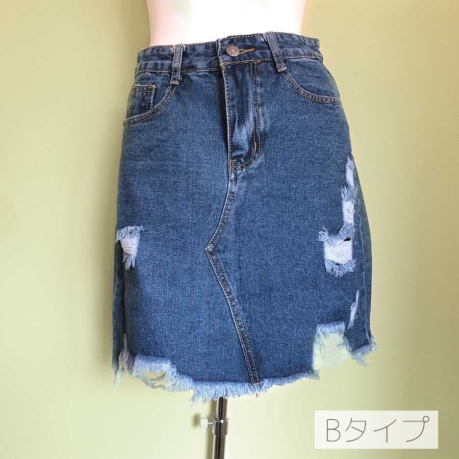 Bタイプはダメージ加工がポイントのデニムスカート!くらっゆが大きめに入っていて裾の切りっぱなしが可愛いデザイン♪Aタイプ、Bタイプ共にハイウエストタイプなので脚長効果も◎!