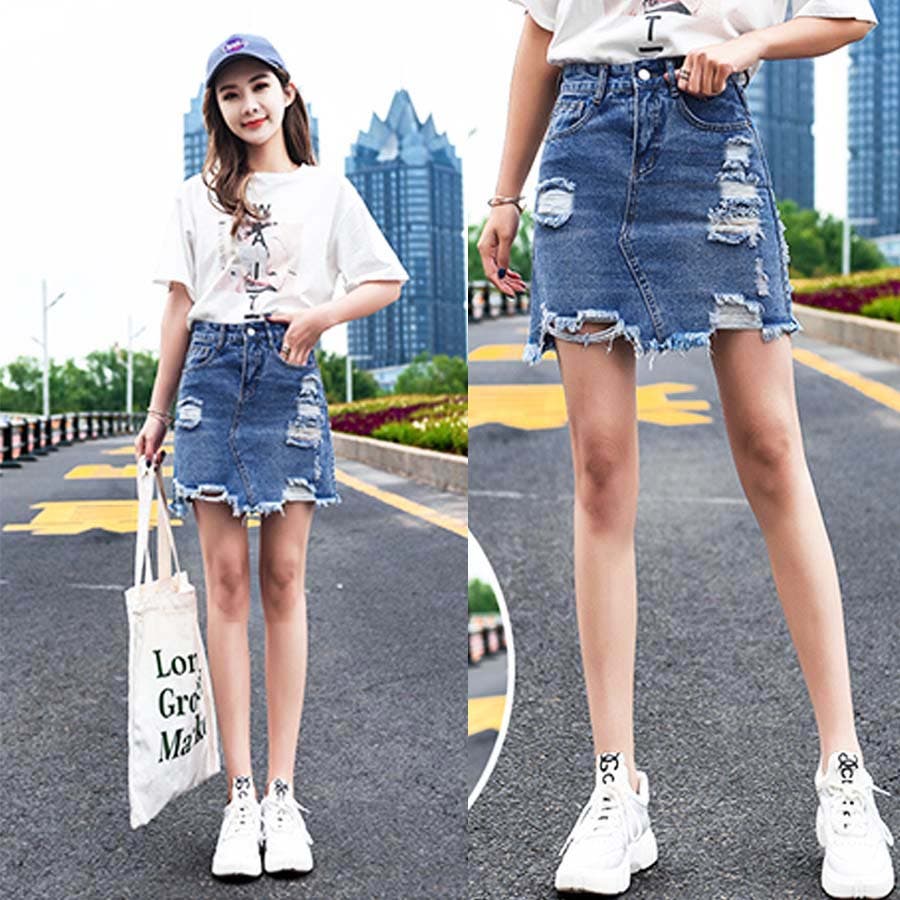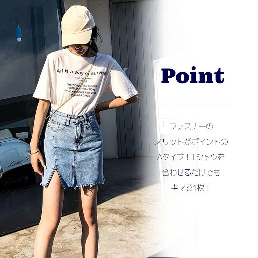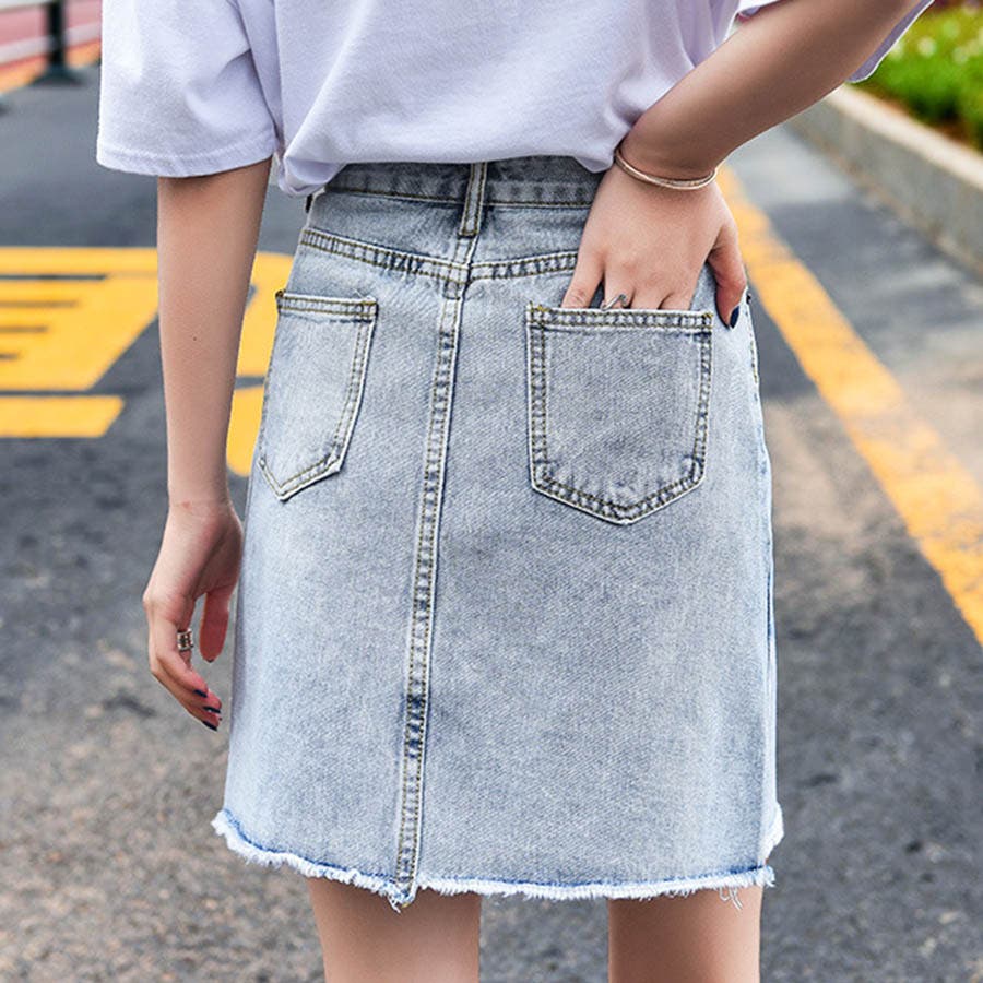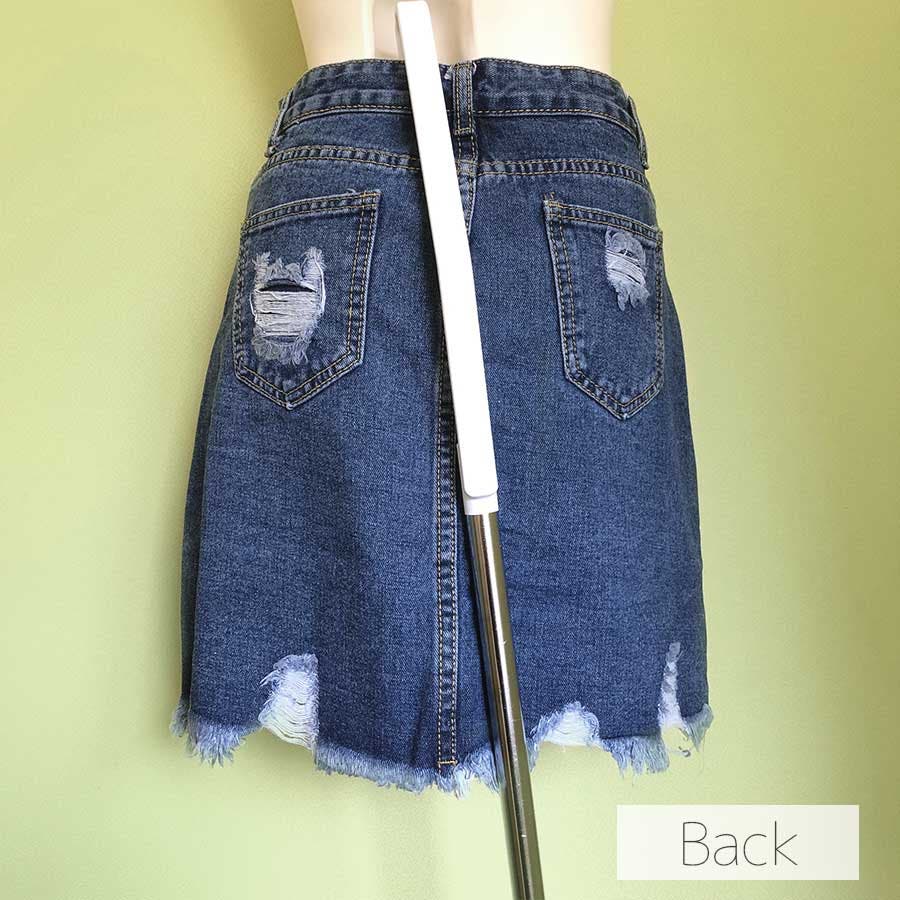 Bタイプはダメージ加工がポイントのデニムスカート!くらっゆが大きめに入っていて裾の切りっぱなしが可愛いデザイン♪Aタイプ、Bタイプ共にハイウエストタイプなので脚長効果も◎!