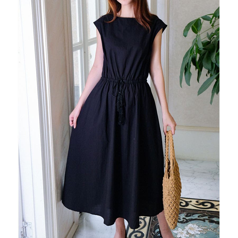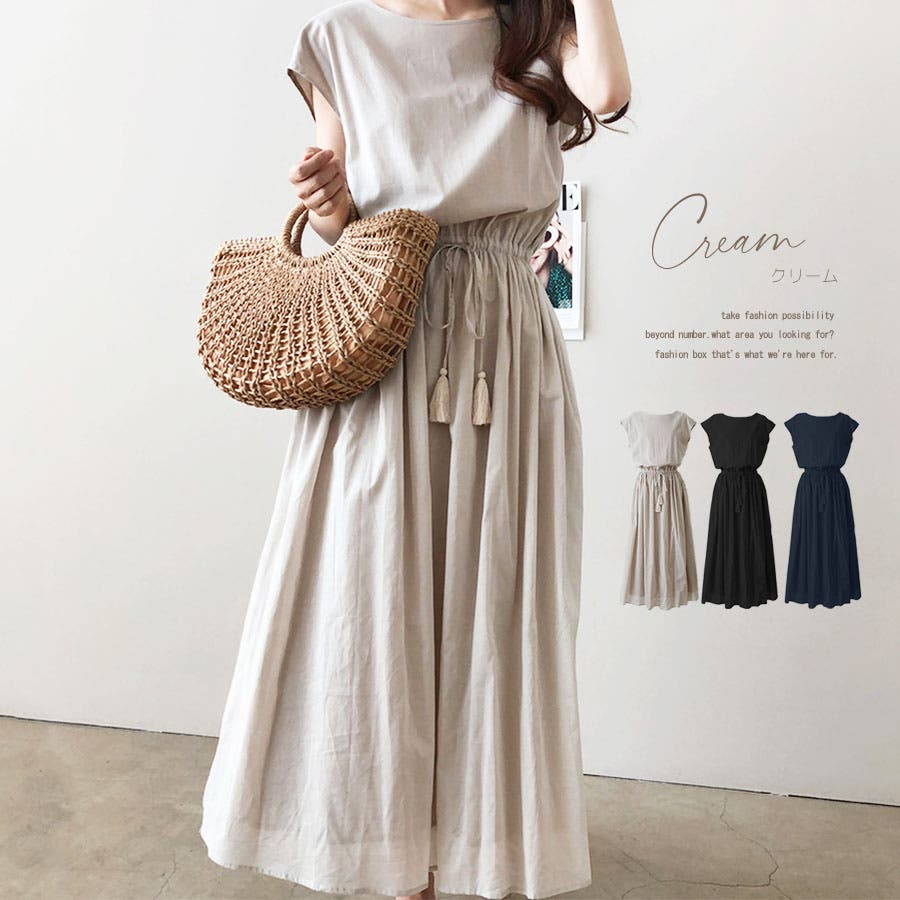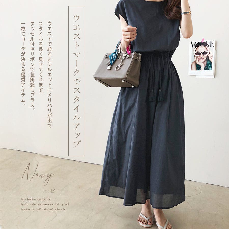 これからの季節にぴったりな、ナチュラル素材のロングワンピースが新登場!ウエストで絞るとシルエットにメリハリが出てスタイルUP!タッセル付きリボンで装飾感もプラス!袖はフレンチスリーブになっているので女性らしいしなやかな肩のラインを演出!1枚でしっかりコーデがキマる優秀アイテムです。ロング丈だけど涼しげな生地感で重たくならず、しっとりした落ち感で大人っぽさを引き出してくれます。【スタッフの声】