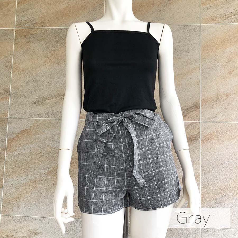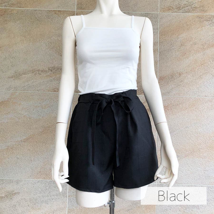 裾幅が広めなふんわりした印象のパンツは、ウエストをリボンで引き締めることで、