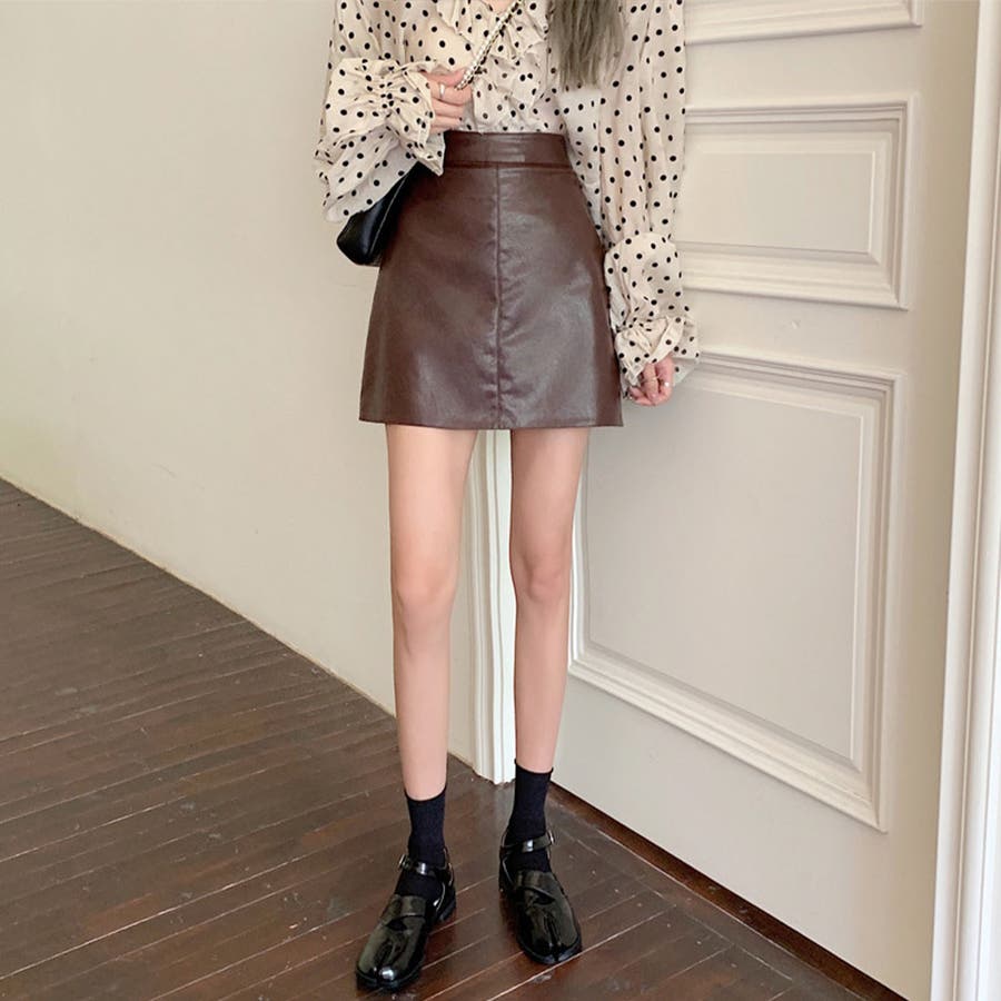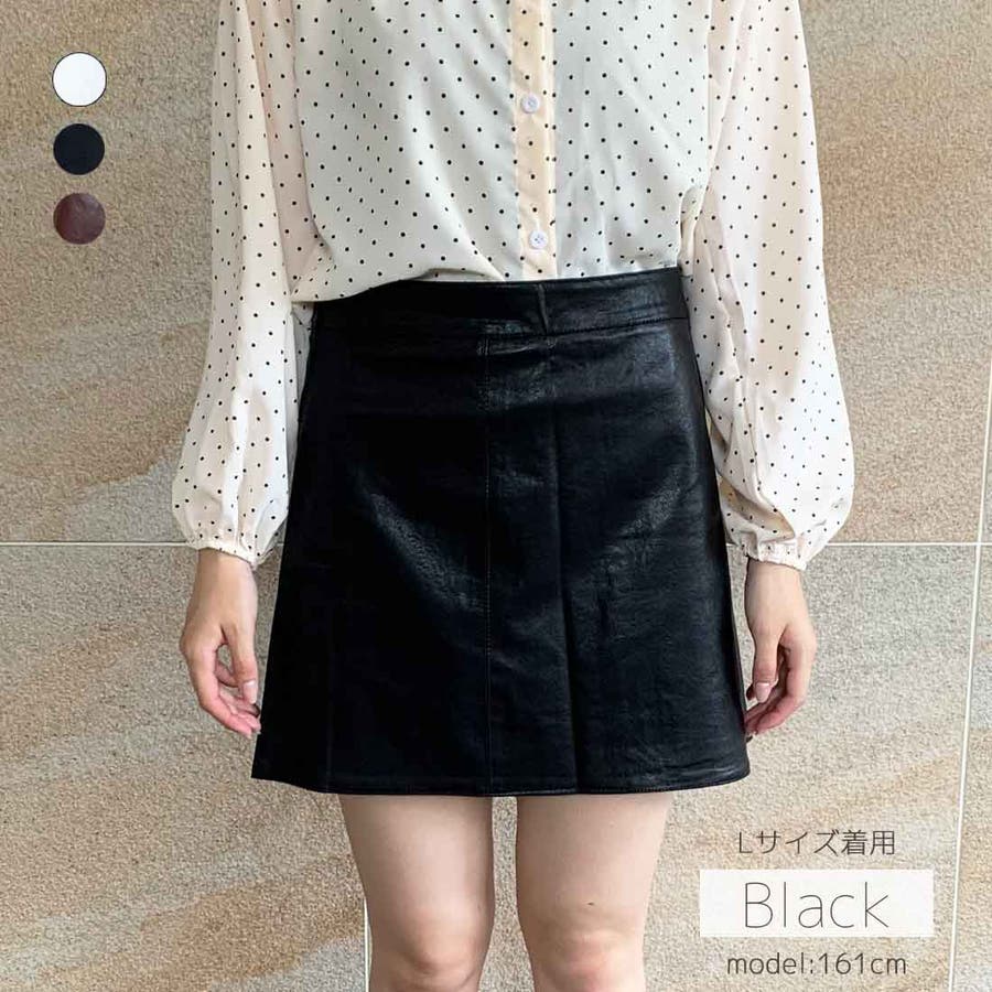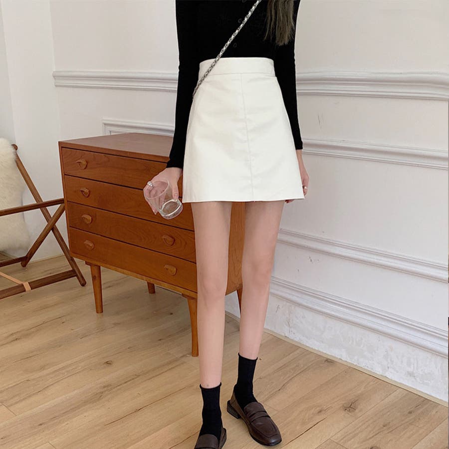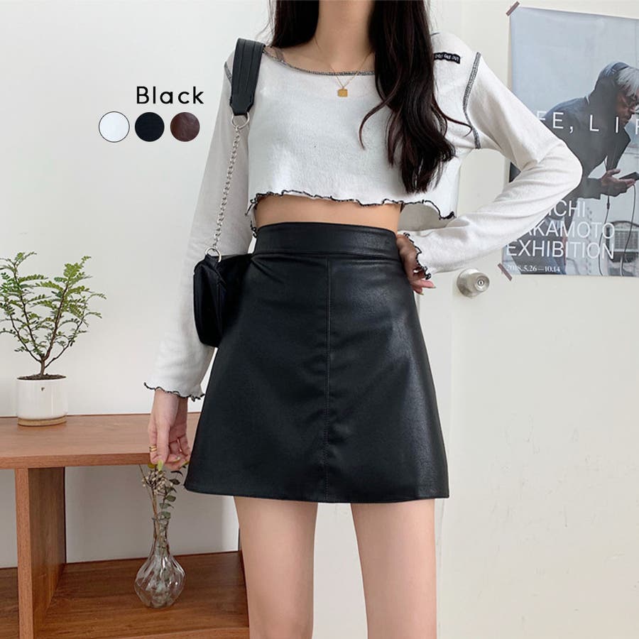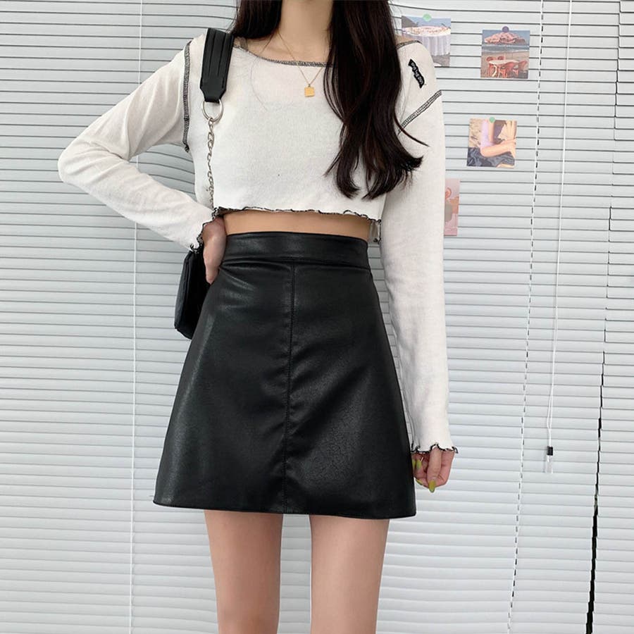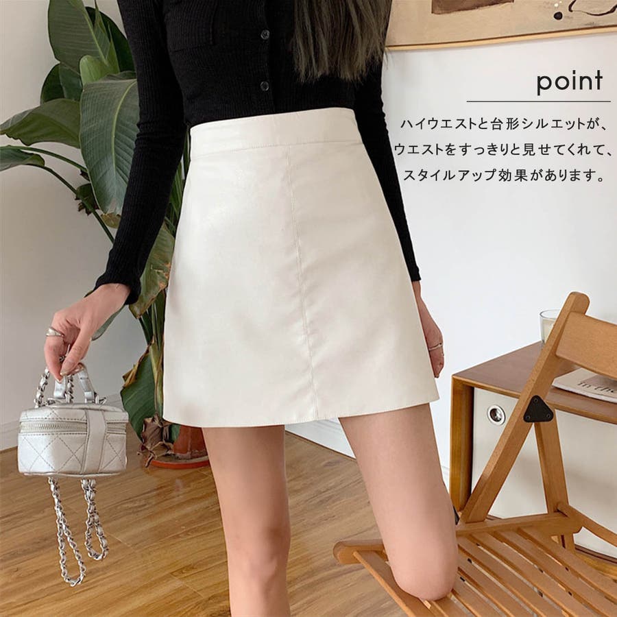 秋冬トレンドのレザー調ミニスカートが新登場!ハイウエストと台形シルエットが、ウエストをスッキリ見せてくれてスタイルアップに効果があります◎柔らかいフェイクレザーの生地で、窮屈感がなく履き心地も抜群!シンプルな無地のデザインと幅広いコーディネートに合わせやすい3色なのできれいにもカジュアルにも使える万能アイテムです!