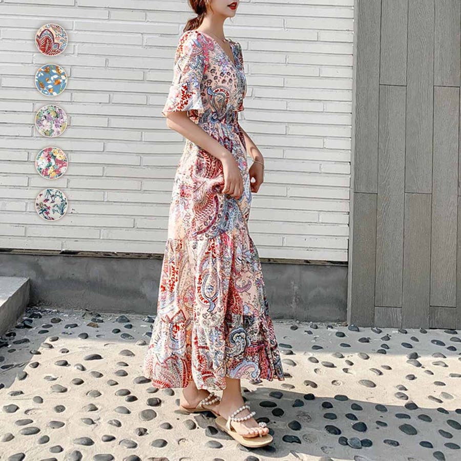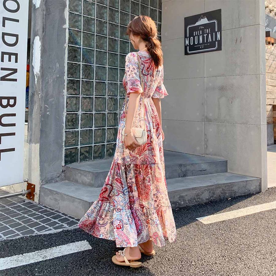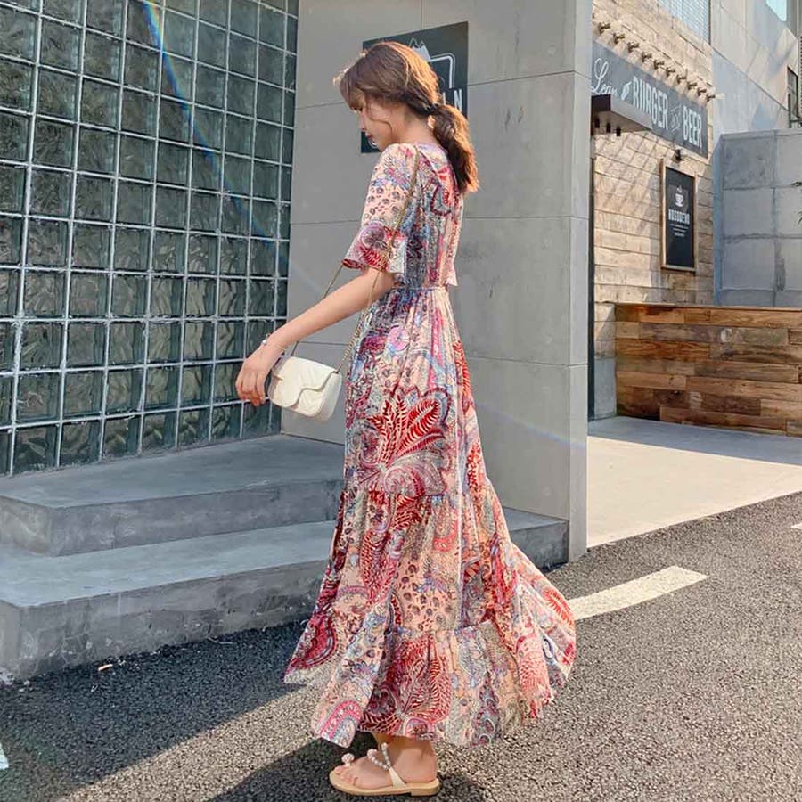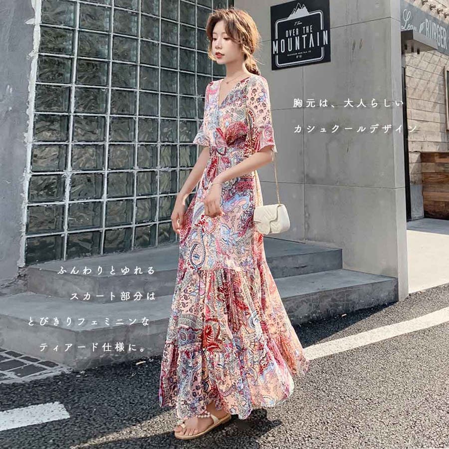 韓国ファッション 春 秋冬 AW ロングワンピース ワンピース 秋 結婚式 パーティー 2022 秋 夏 新作 韓国ファッション リゾートワンピース ハイウエスト 韓国 レディース ワンピース ロングスカート ロングワンピース ペイズリー フラワー 総柄 リゾート 旅行 ティアードワンピース