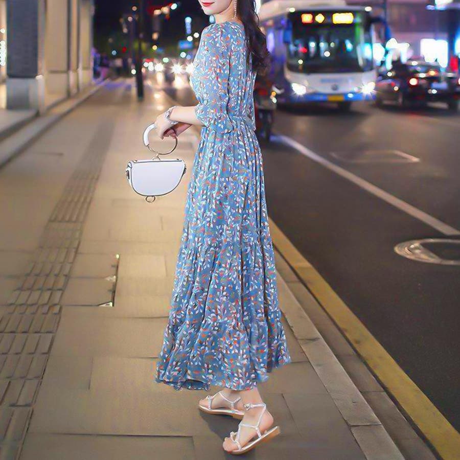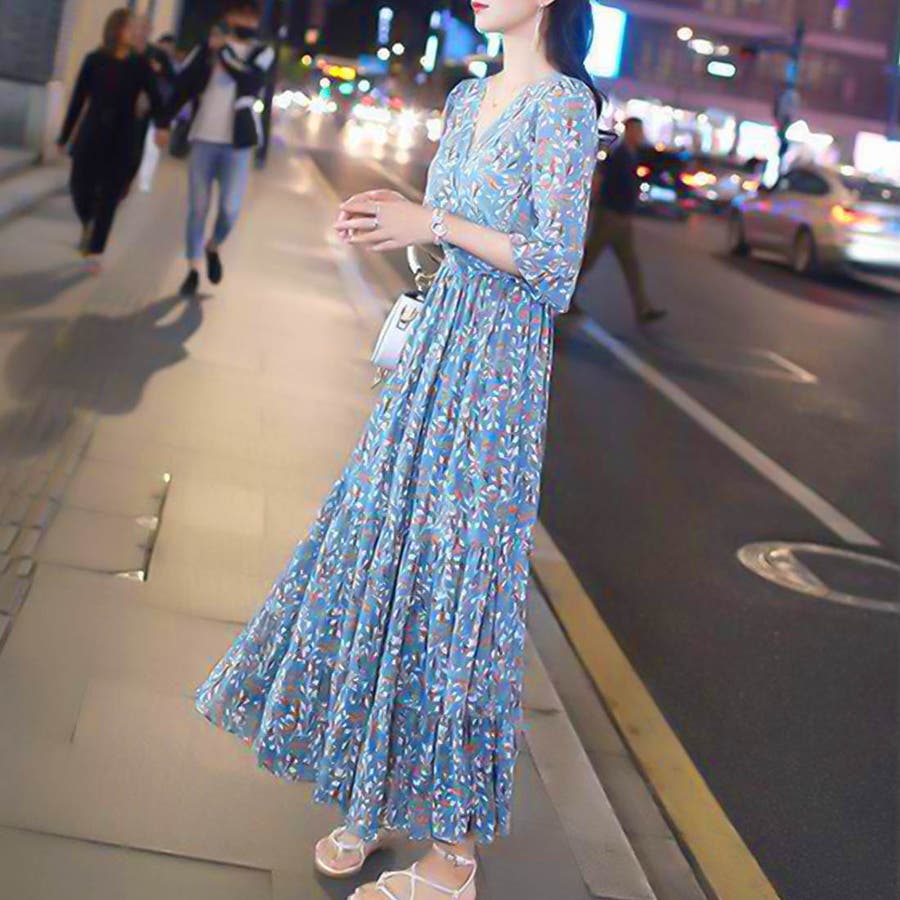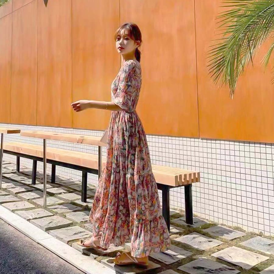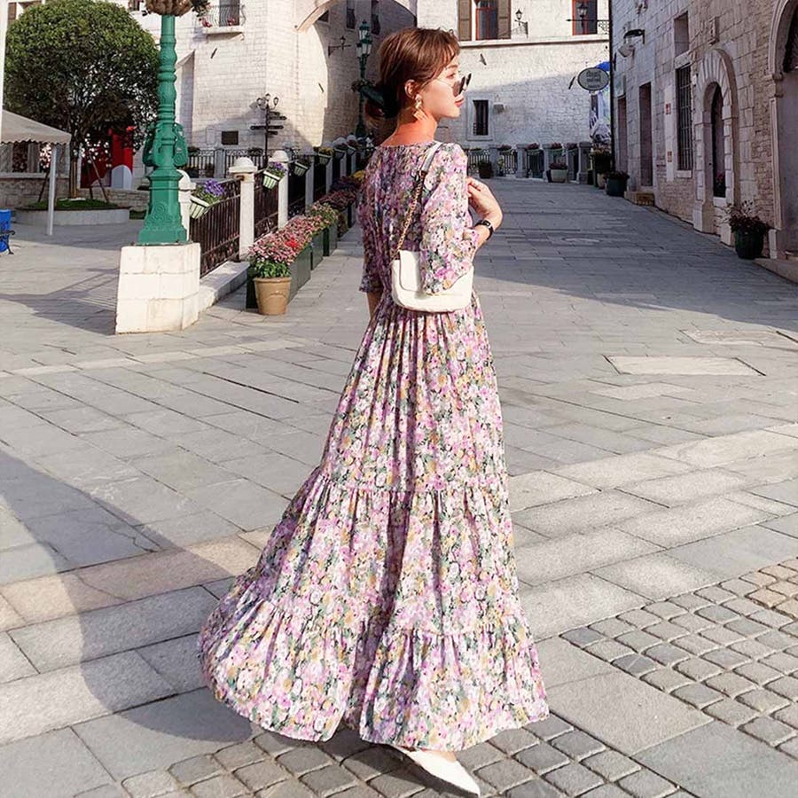 韓国ファッション 春 秋冬 AW ロングワンピース ワンピース 秋 結婚式 パーティー 2022 秋 夏 新作 韓国ファッション リゾートワンピース ハイウエスト 韓国 レディース ワンピース ロングスカート ロングワンピース ペイズリー フラワー 総柄 リゾート 旅行 ティアードワンピース