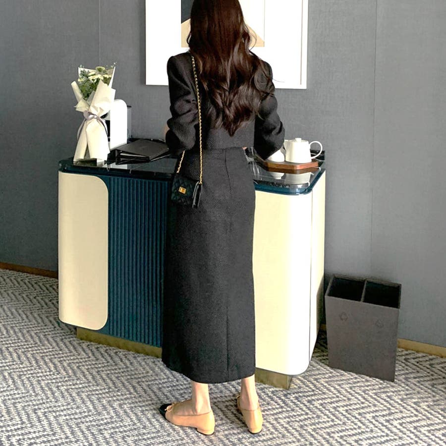 ・スカートのボタンはフェイクのため中が見えることもなく、裏地もついているので安心してご着用いただけます。