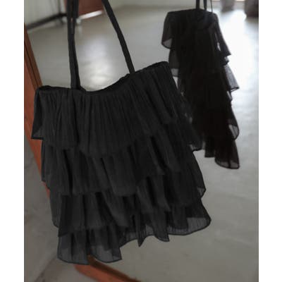 シアーなオーガン時素材を重ねた小さめのティアードバッグ。