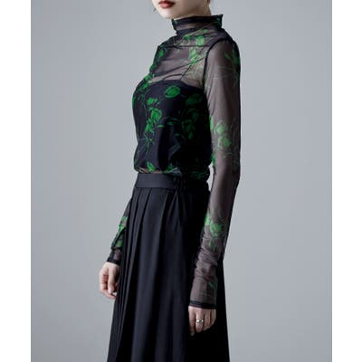 etoll エトル 花柄シアーボトルネックトップス