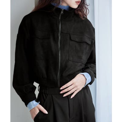 etoll エトル スエードライクスタンドカラーショートブルゾン