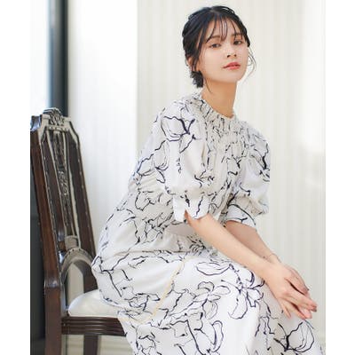 首元とウエストに入れたギャザーで動きを出したシンプルながらも細かなディテールで上品さを演出した1着。