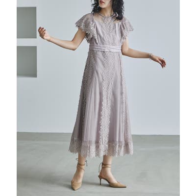 niana ニアナ ドットチュールとレーステープを切り替えたフェミニンなドレス。