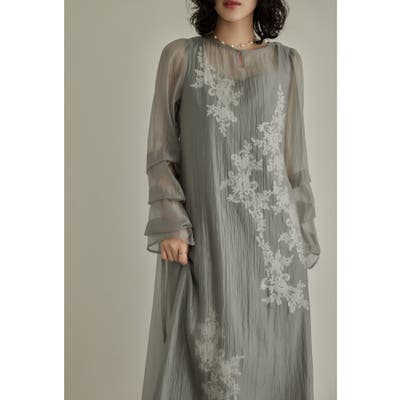 niana ニアナ モチーフレースに透け感のある楊柳生地を重ねたシアーワンピース。