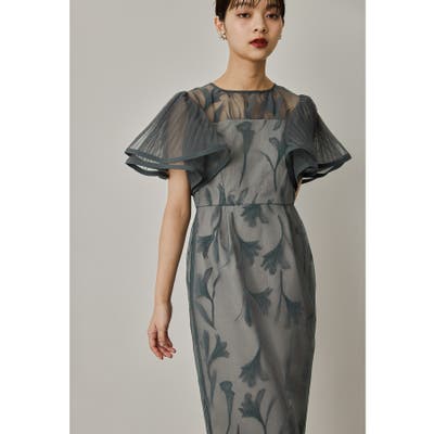 オーガンジー素材を重ねたフリルスリーブが目を惹くデザイン。