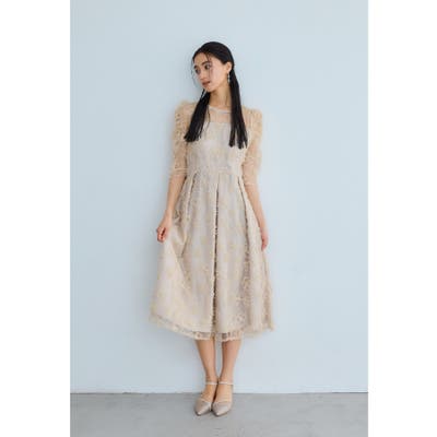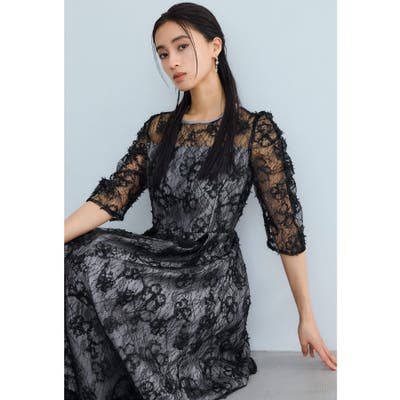 niana ニアナ 裏地との陰影が美しい立体感のあるフラワーレースのオケージョンドレス。