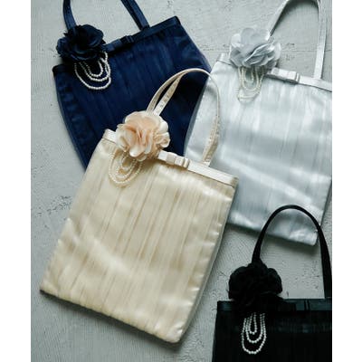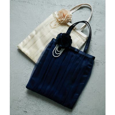 サテンの中地とチュールのギャザーが上品なフォーマル用サブバッグ。
