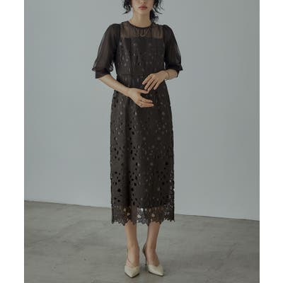 niana ニアナ ケミカルレースが目を惹くパーティードレス。