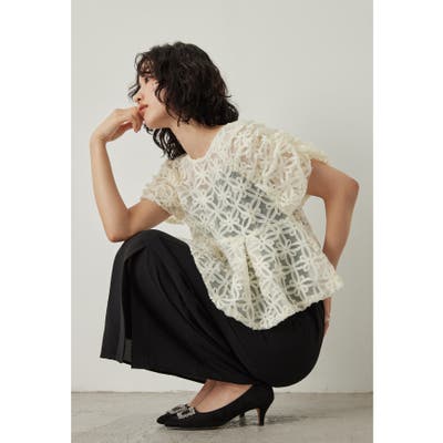 niana ニアナ フラワーテープ刺繍ペプラムブラウスセットドレス