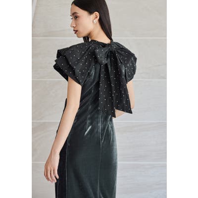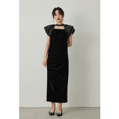高級感ある滑らかな光沢のベロア素材を纏ったドレス。