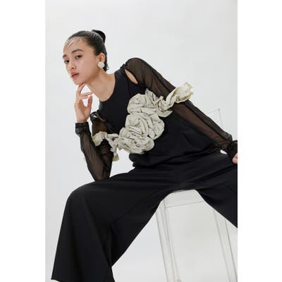 高めのウエスト切り替えとタックを施し、美しいワイドシルエットに。