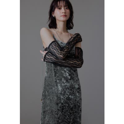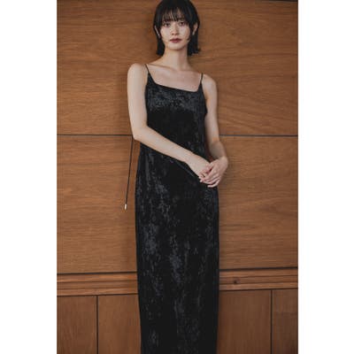 高級感のあるベロア生地で仕立てたキャミドレス。