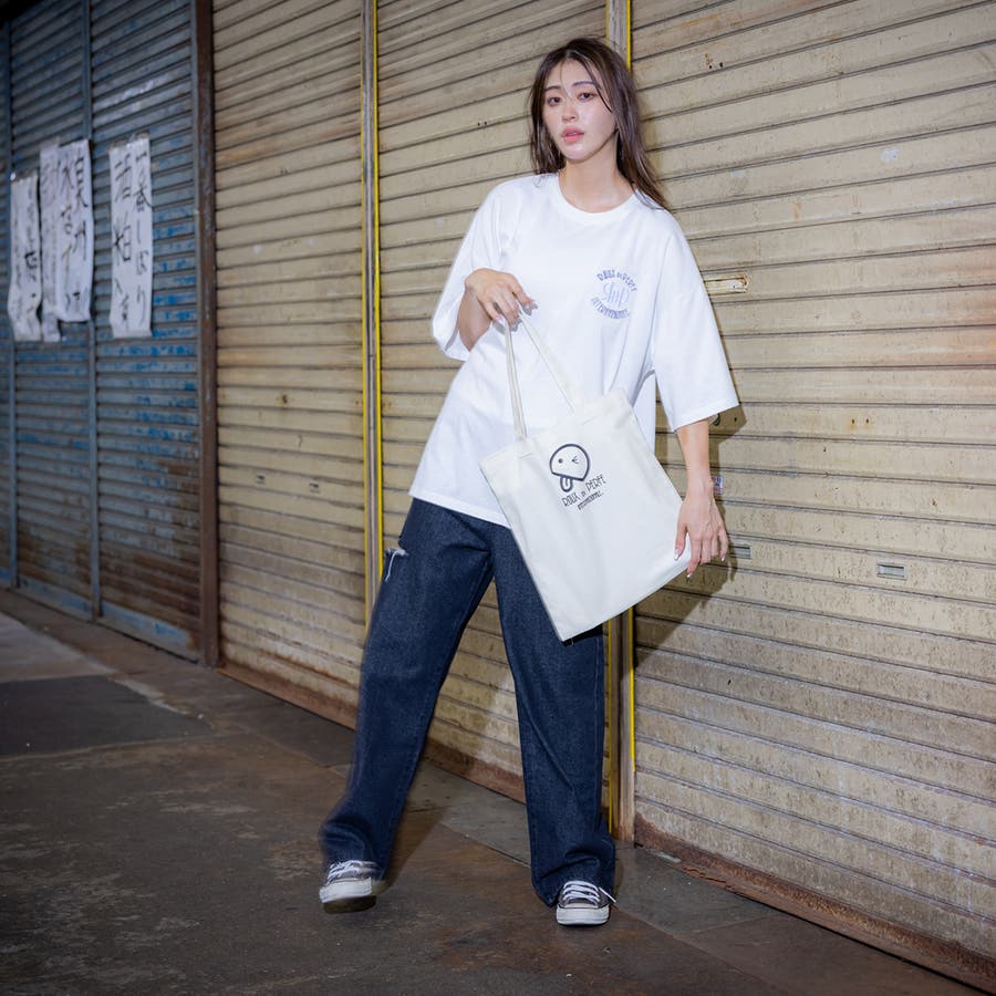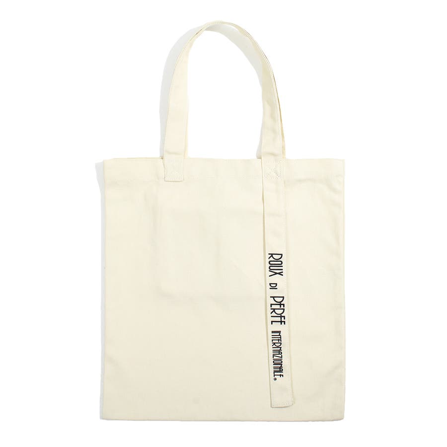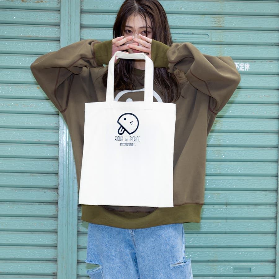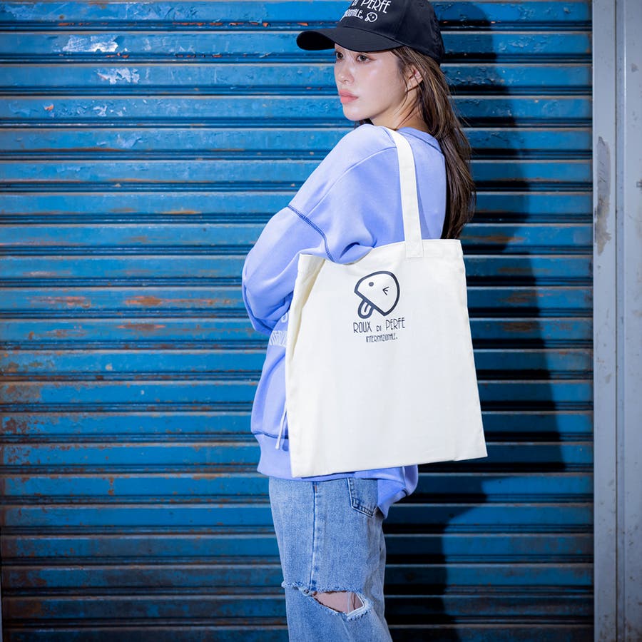 ルゥ・ディ・パフィーのアイコン〈ベーマーク〉を大胆にプリントした、キャンバストートバッグ。