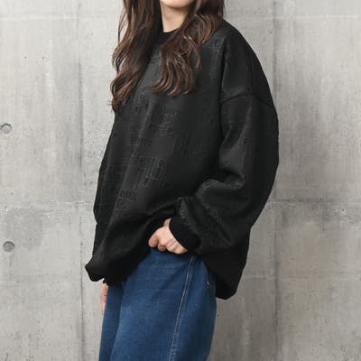 立体的なエンボス加工で「ROUX DI PERFE」のロゴを全面にあしらった、存在感のあるトップス。