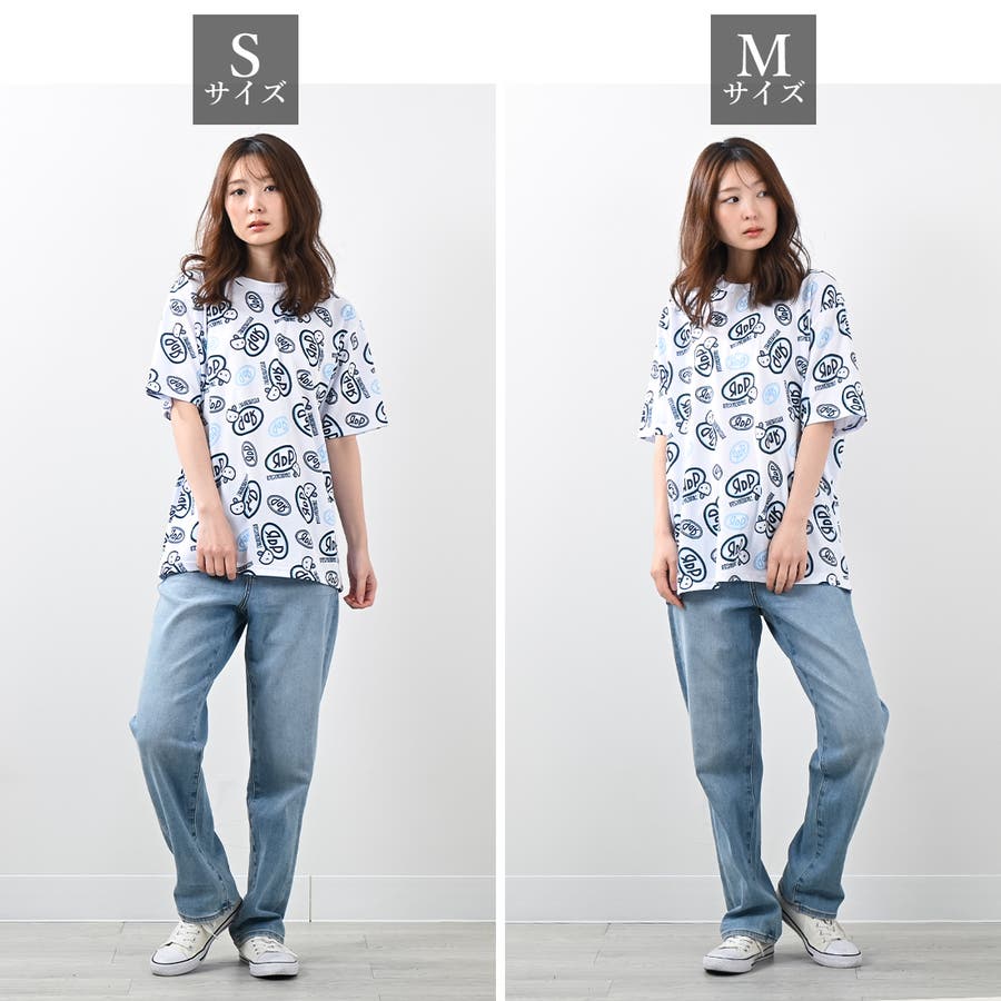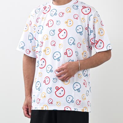 遊び心あふれるデザインが魅力の総柄プリントTシャツ。