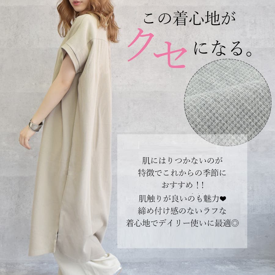 コットン100%の伸縮性のある柔らかい生地感で着心地の良いワッフルワンピース。