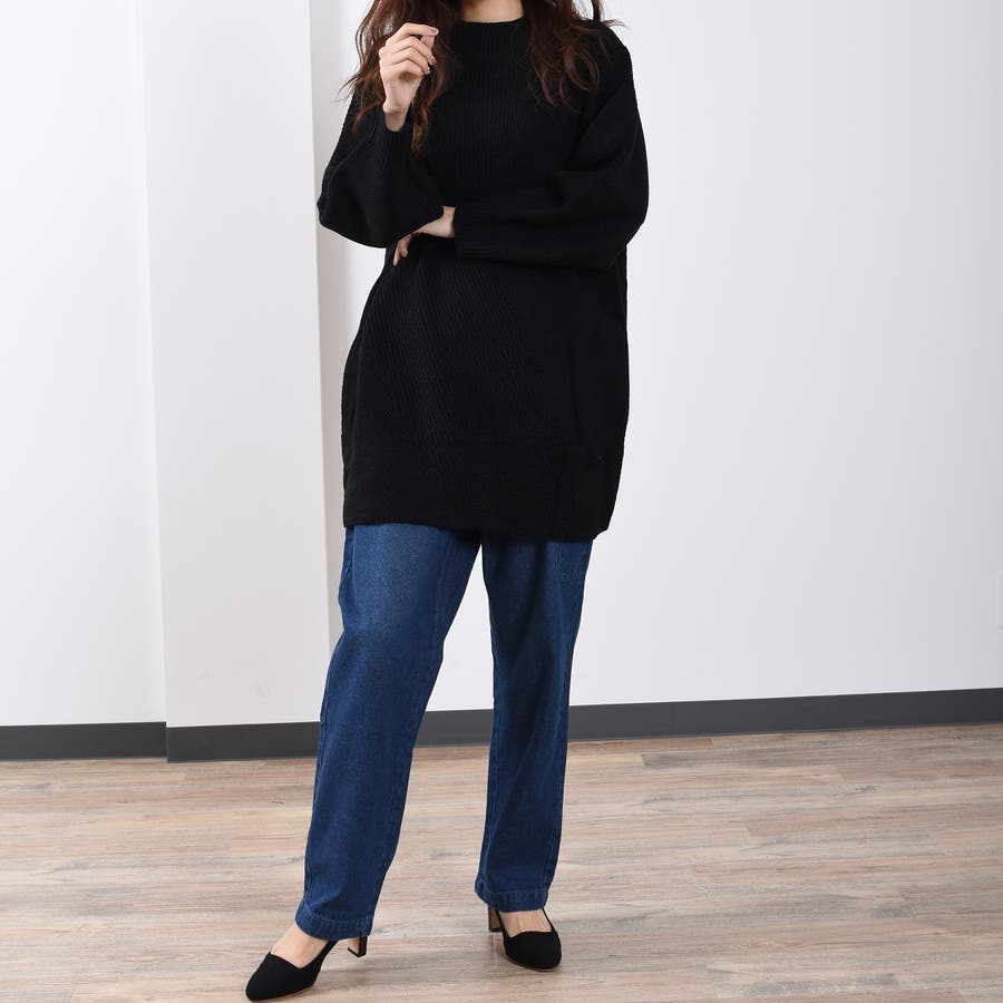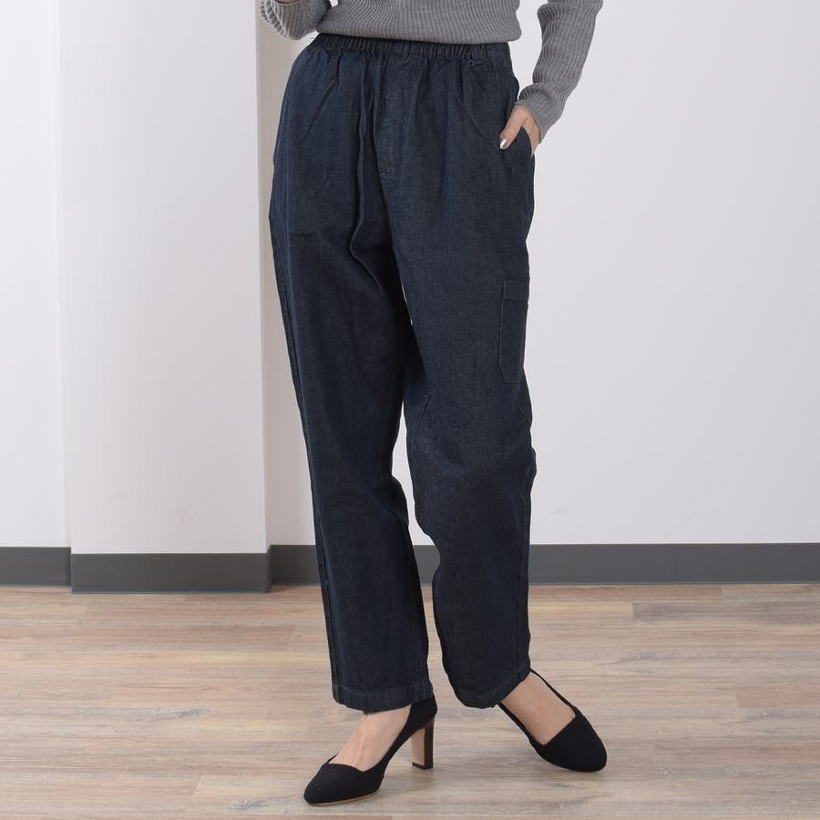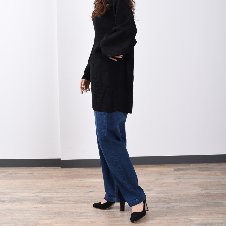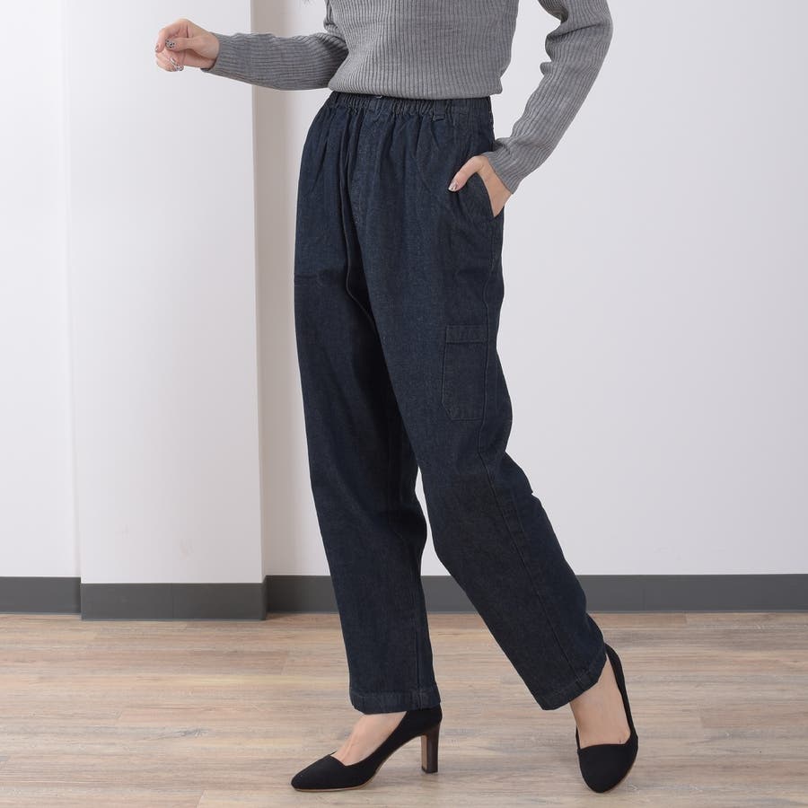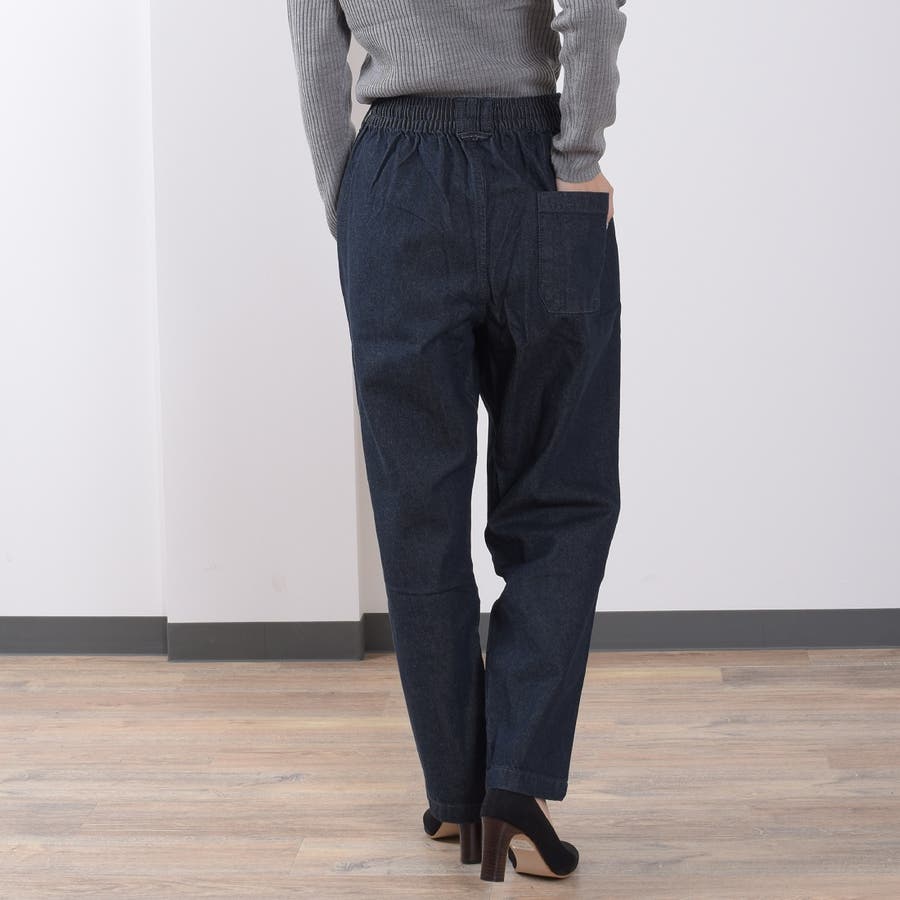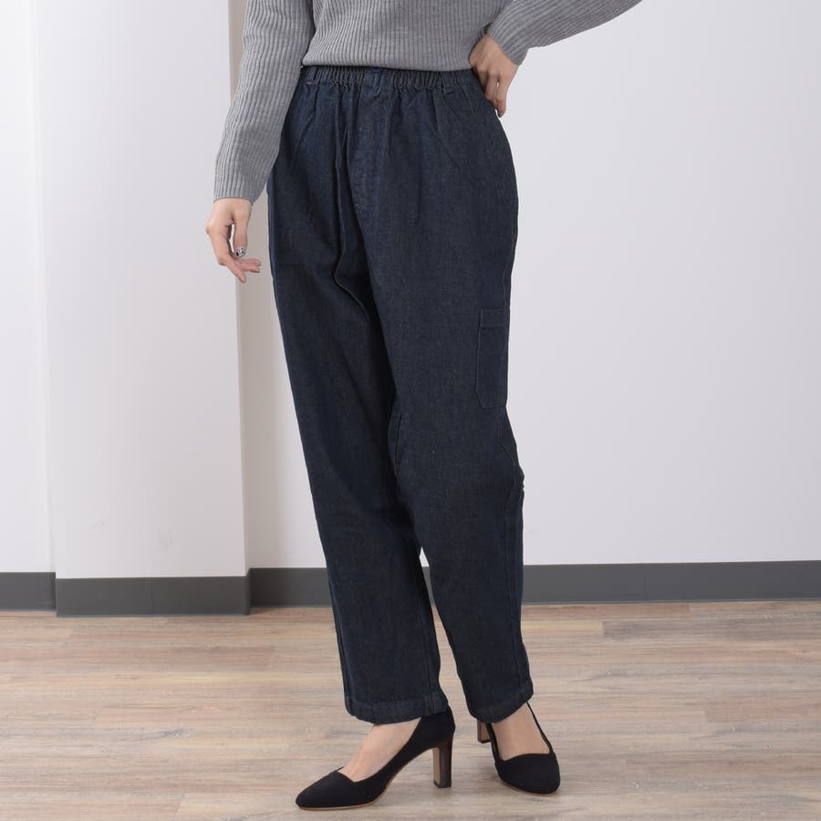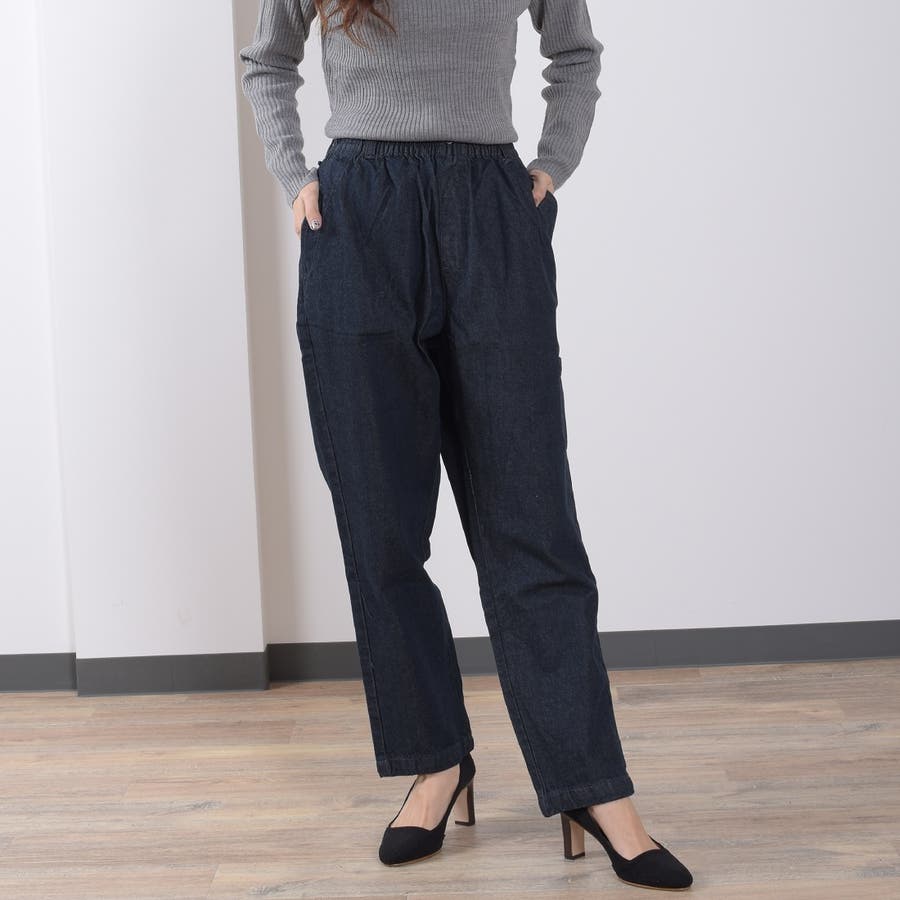 長めのニットなどとコーデするとキレイ目に。トップスをインするとコロンとしたテーパードシルエットが際立つ可愛いシルエットが楽しめる着回し抜群のデニム。