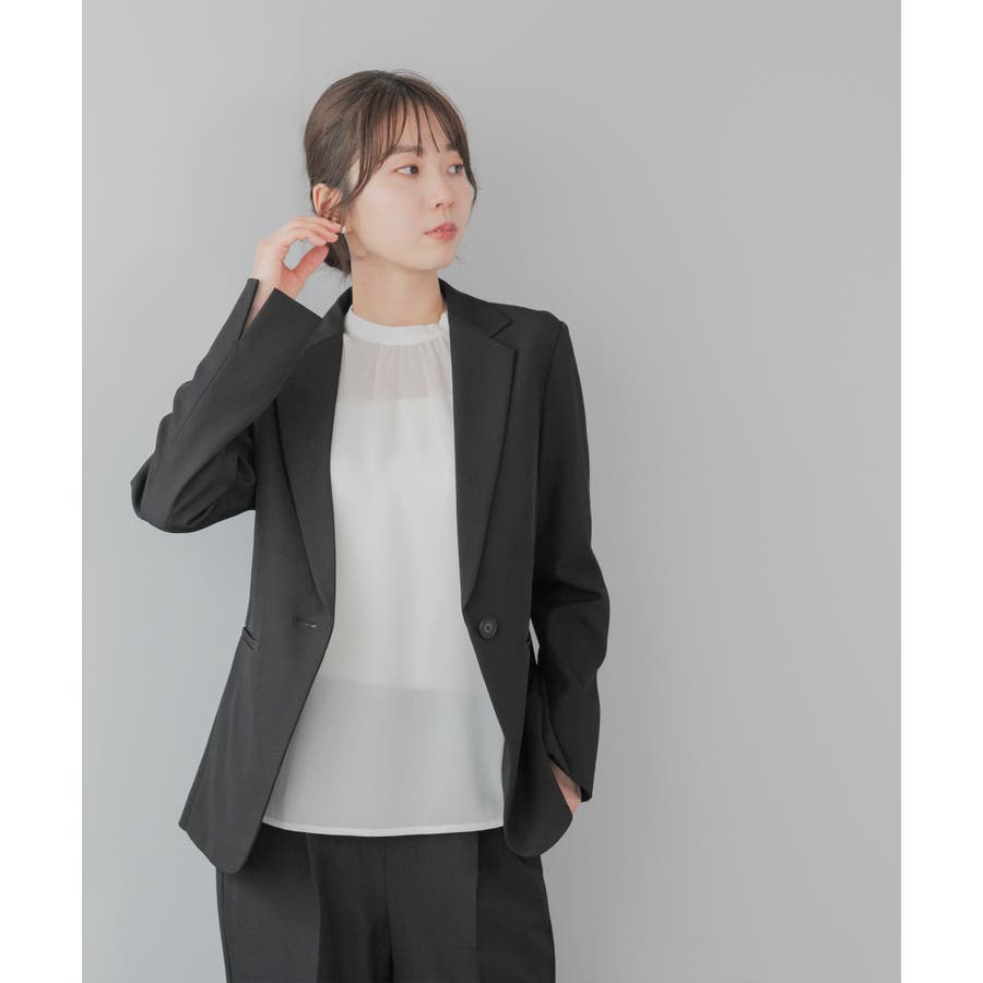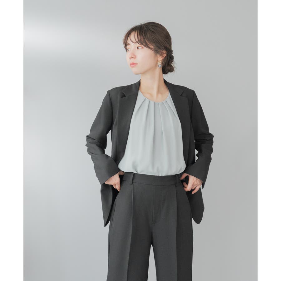 テーラードのきちんとしたデザインとセミワイドシルエットが合わさって