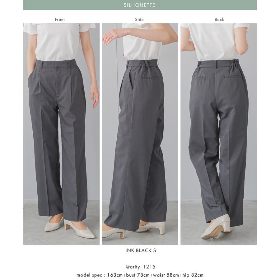 太すぎないワイドパンツですらっと細身せのスタイルアップシルエット。