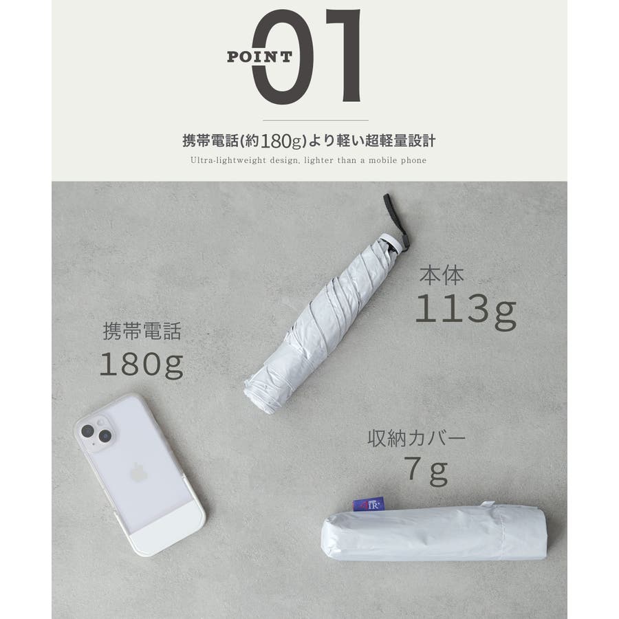 特徴 | 晴雨兼用 超軽量折り畳み傘 ◆とにかく軽い超軽量仕様 携帯電話(180g)よりも軽く、カバンに入れてあることも忘れてしまうくらいの軽さ。 お子様でも持ち歩けるので、遠足時や旅行の際の雨対策にも◎ ◆遮光率・UV CUT率 99.9% 折り畳みタイプなので、いつものバッグに入れて紫外線対策バッチリ! 晴雨兼用だから、急な雨でも心配なし。 ◆高強度カーボン骨 耐風力を高めスチールと同等の強度を持っていながら、スチールよりも軽い。 強風で反り曲がっても元に戻る弾力性がある |