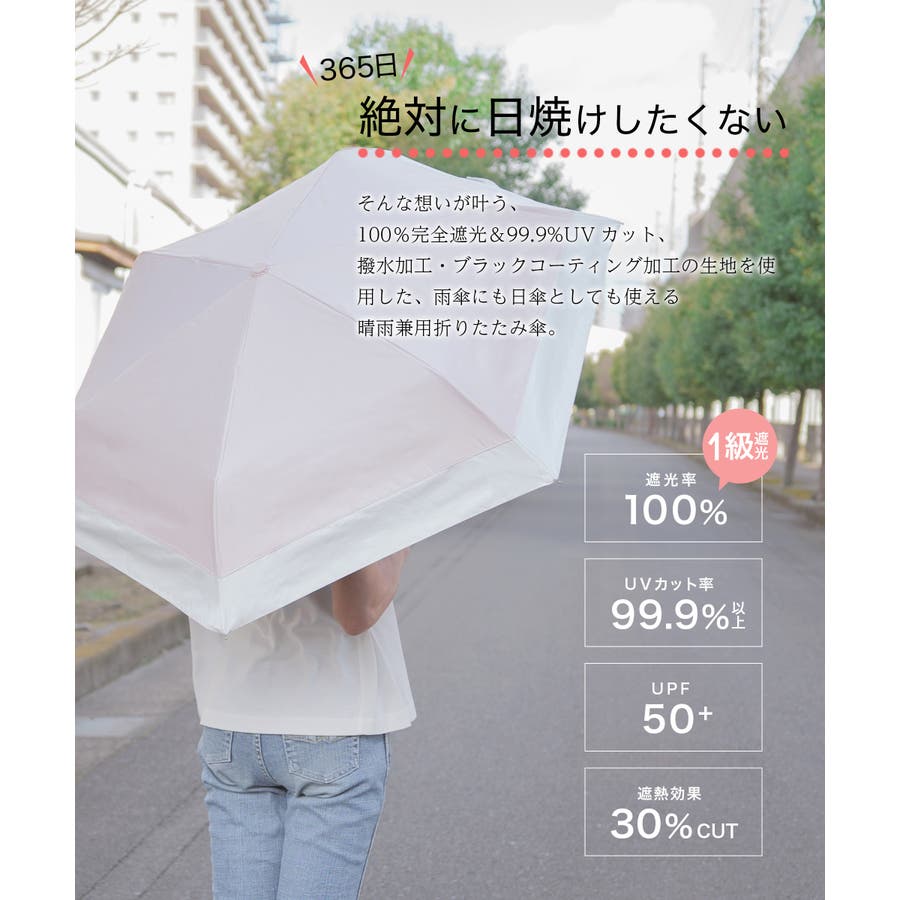 | 素材 | 【晴雨兼用】遮光率100% | 一級遮光 | UVカット率99.9% | 撥水加工 | 日傘としてはもちろん雨傘としてもお使いいただけます |
