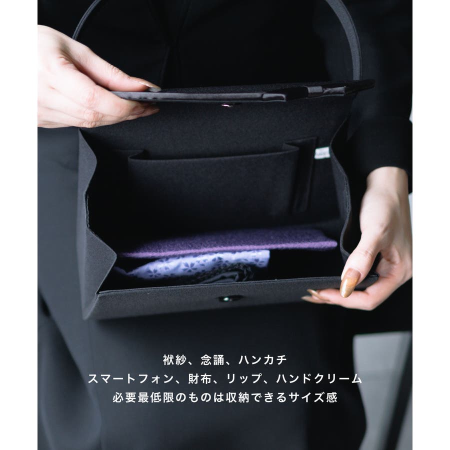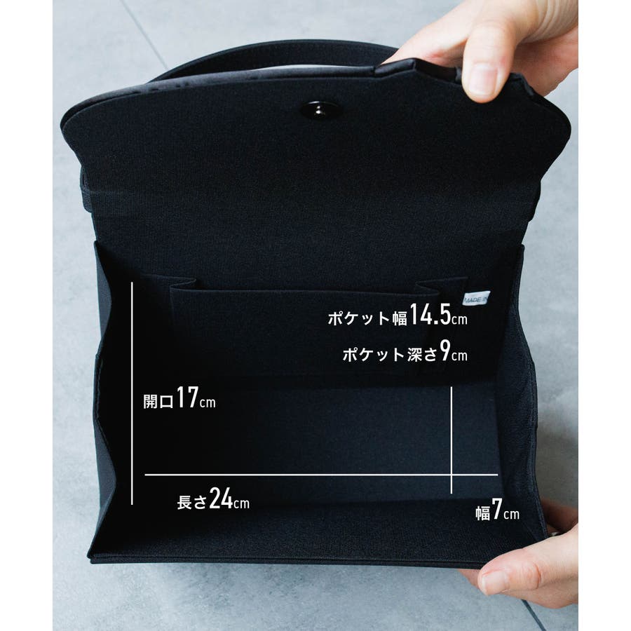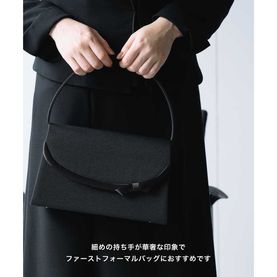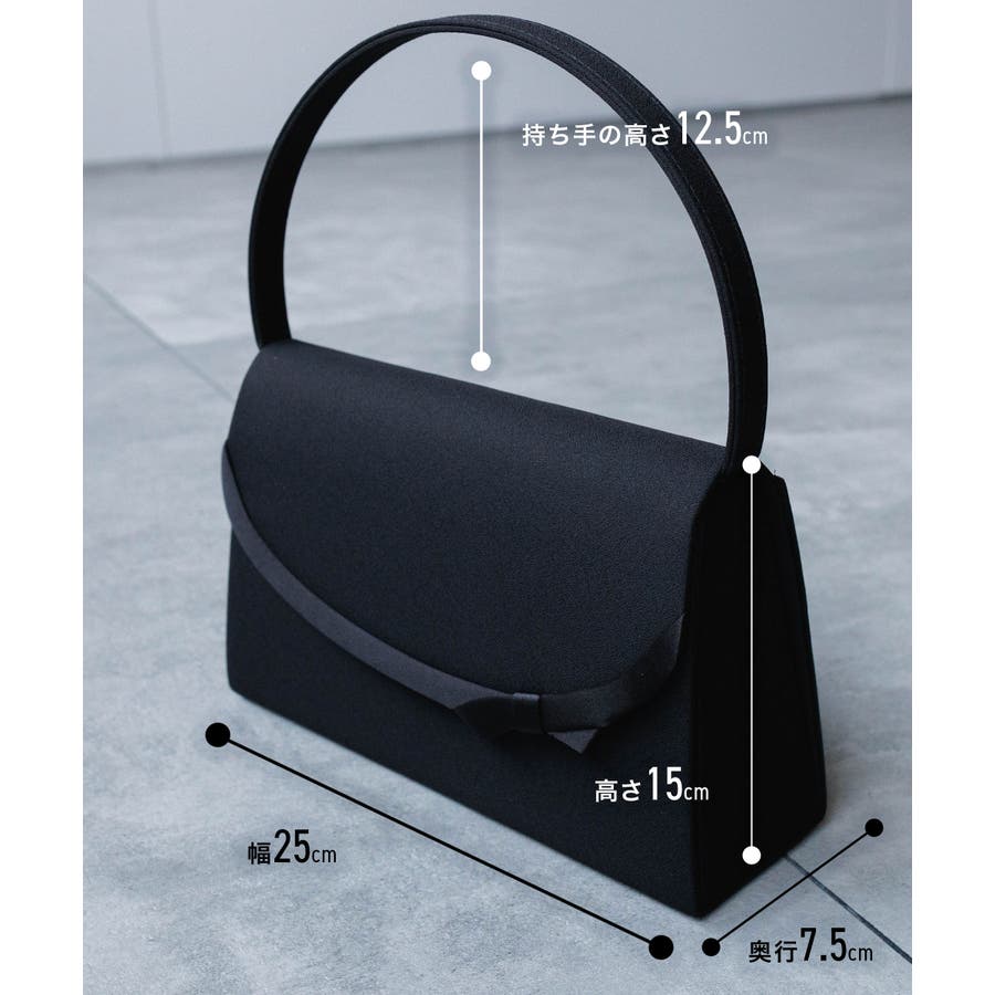 特徴 | フラップにあしらったサテンのリボンが可愛らしい フェミニンなフォーマルバッグ 細めの持ち手が華奢な印象で ファーストフォーマルにもおすすめのバッグです 葬儀や通夜などの冠婚葬祭にお使いいただけるバッグで、 袱紗や念珠、ハンカチ、スマートフォン、財布、リップ、ハンドクリームなど、必要最低限のものが収納できるサイズ感 内側には小物を入れやすいポケット付き 開口部は開閉のしやすいマグネット仕様 持ち手の高さ:12.5cm (外寸) 幅:25cm 奥行:7.5cm 高さ:15cm (内寸) 幅:24cm 奥行:7cm 開口 :17cm 生産国:中国 |