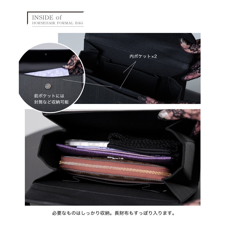 大切な場面にふさわしい、品格と実用性を兼ね備えたブラックフォーマルバッグです。