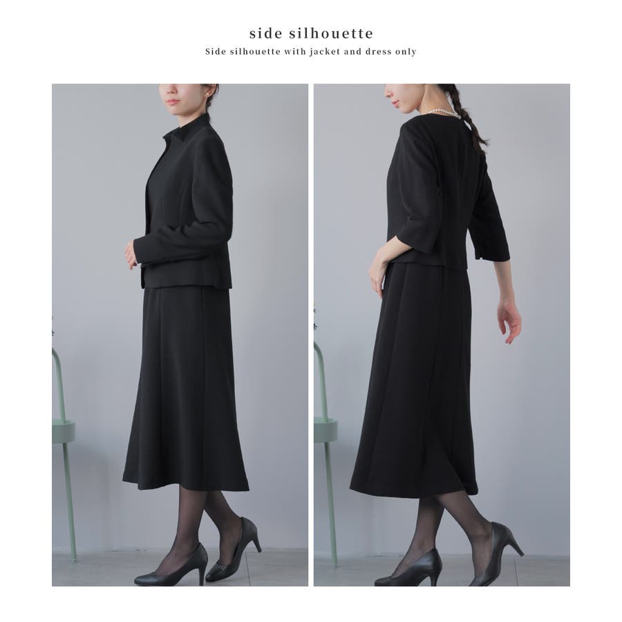長すぎない程よいロング丈。落ち着いた印象のジャケットとワンピースバランス