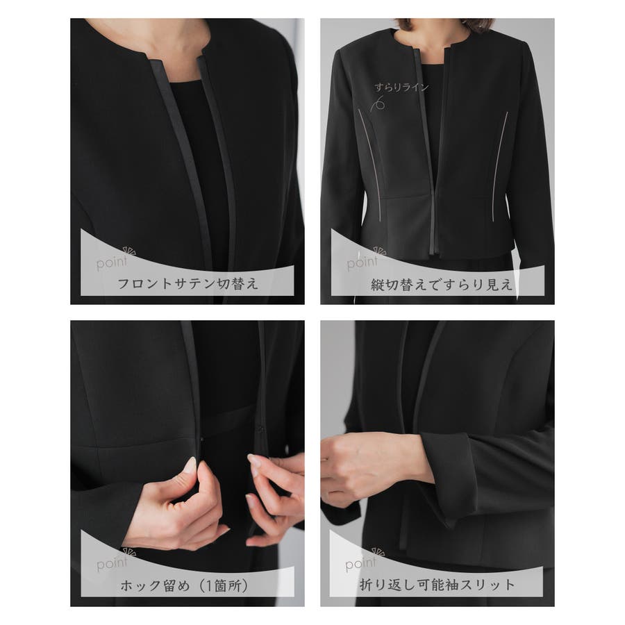 | 特徴 | ラウンドネックジャケットのフロントに配したサテン切替が縦長ラインを強調し、 すっきりすらっと、細見え印象のフォーマルアンサンブル シックな印象を与えてくれるノーカラージャケットは、葬儀・通夜などの冠婚葬祭のシーンだけでなく、 卒業式などのセレモニーシーンにも着用頂ける上品さがあります。 ジャケットの縦長ラインの華奢見え効果+ワンピースのセミフレアラインが相まって、上品な印象を演出 プレーンなデザインでスッキリと着られるワンピース フロントの切替ラインに隠しファスナーでフロントオープン仕様 やや高めにウエストポイントを置くことで脚長効果も、袖はワンピースと同素材を使用、夏の冠婚葬祭も安心して着用頂けます 濃染加工を施した深い黒のブラックフォーマル専用生地 ご家庭での洗濯も可能ですので、急ぐことなく落ち着いて準備して頂けます 立ったときはもちろん、座ったときも膝が隠れる丈感 モデル:163cm / 9号着用 生産国:中国 |