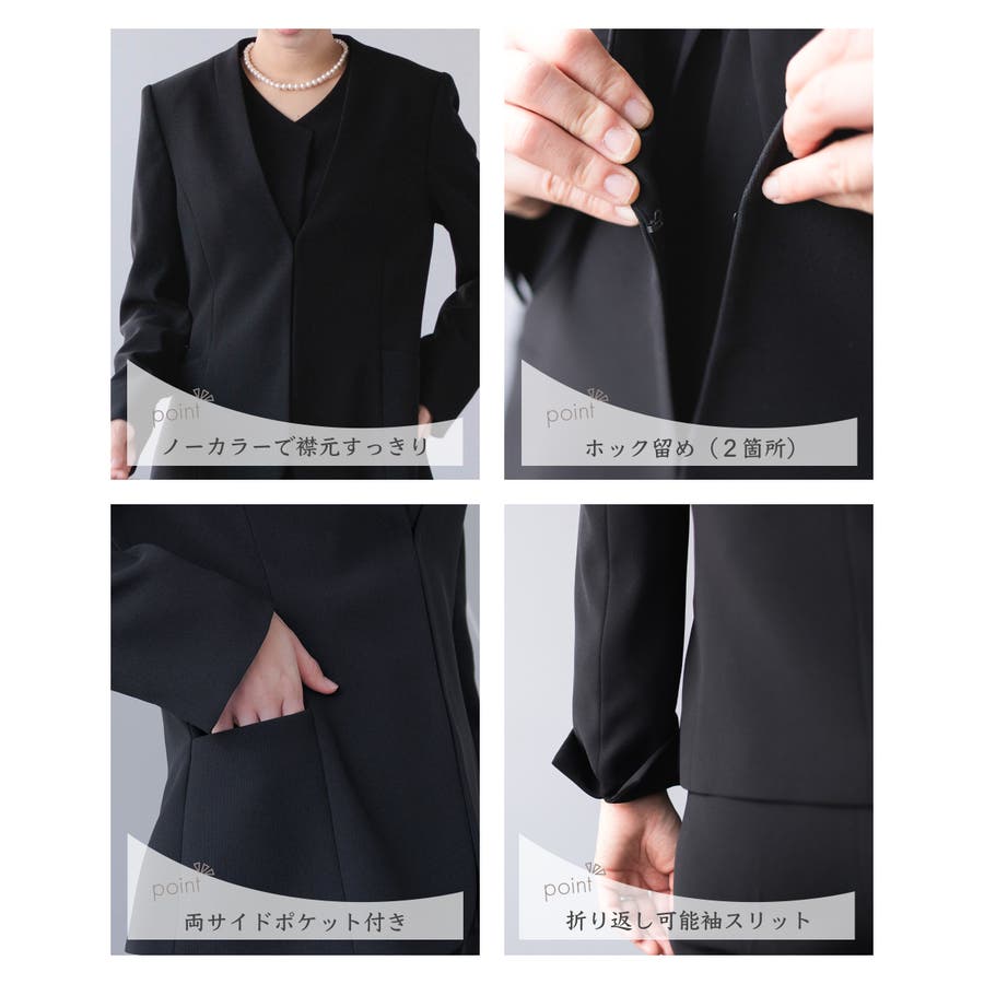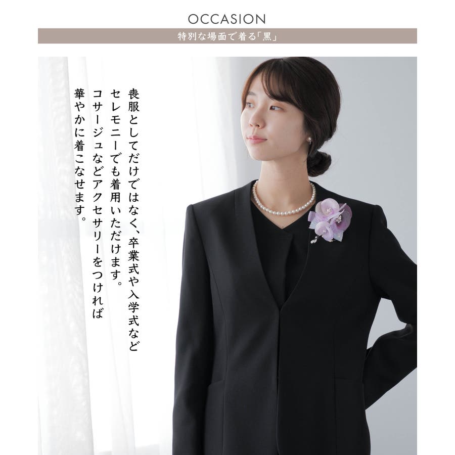 | 素材 | 素材は濃染加工を施した、深い黒のブラックフォーマル専用生地 |