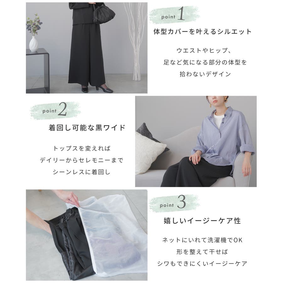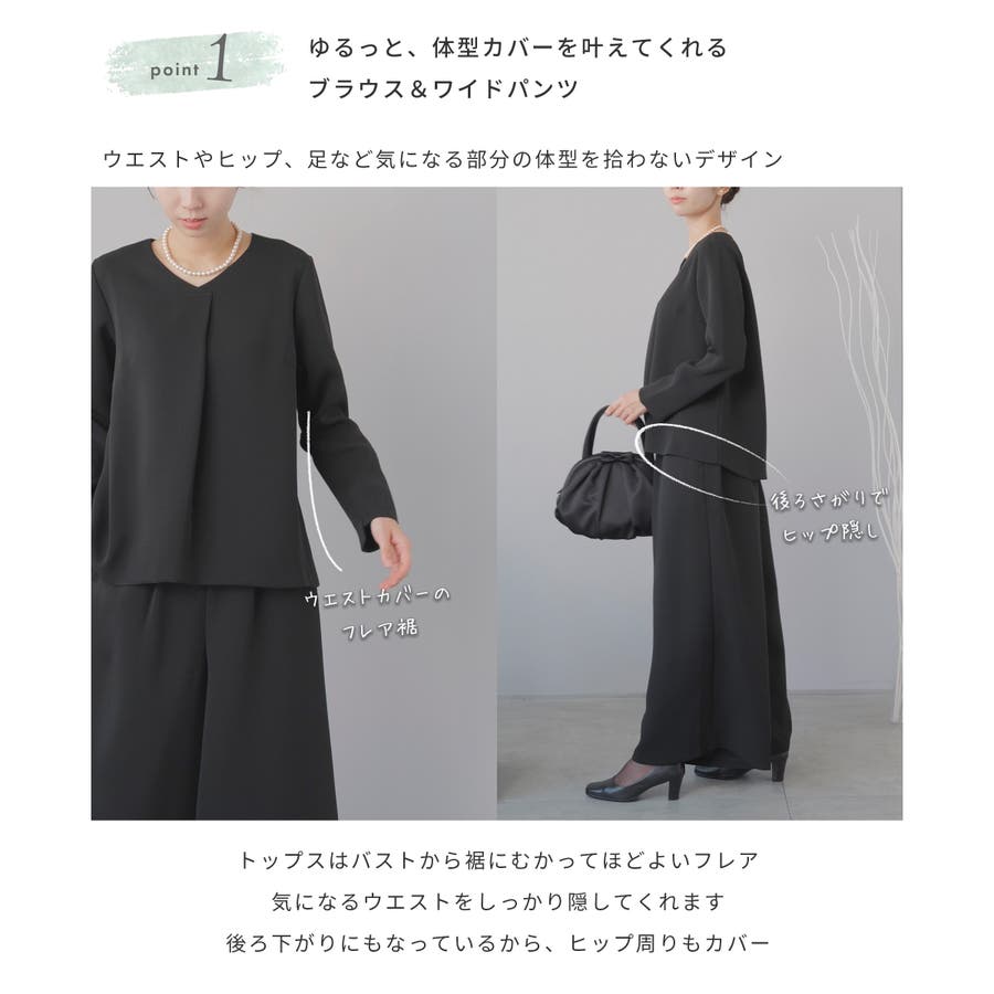 キーワード:ブラックフォーマル 喪服 礼服 ワイドパンツ パンツスーツ 20代 30代 40代 略礼服 洗える ウォッシャブル