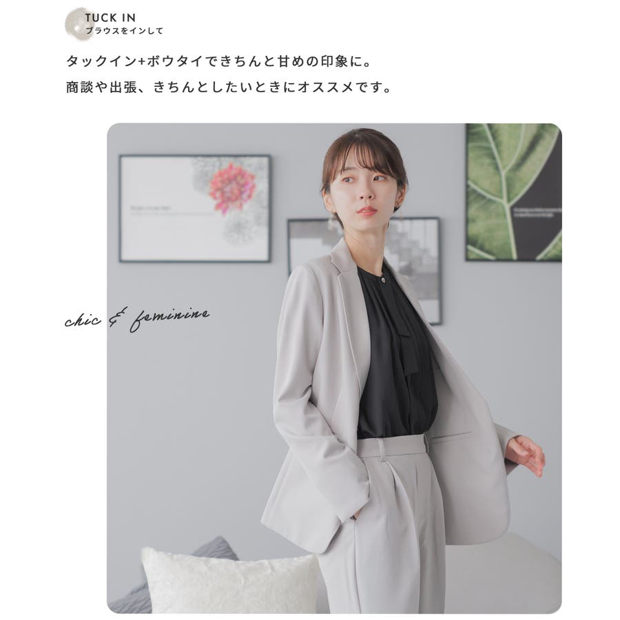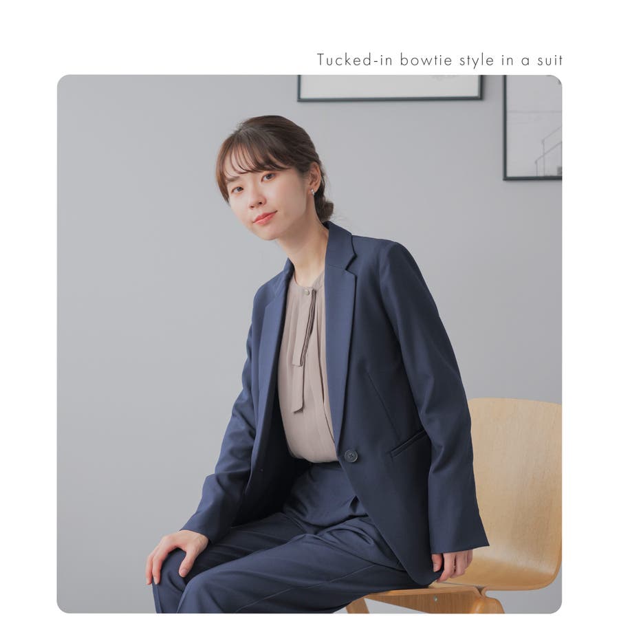 タックイン+ボウタイできちんと甘めの印象に。
