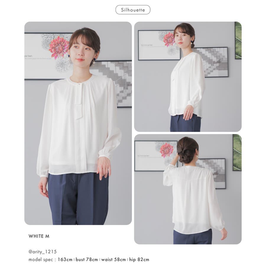 オフィスだけでなく、セレモニー、デイリーまでシーンレスに使える万能ブラウス。