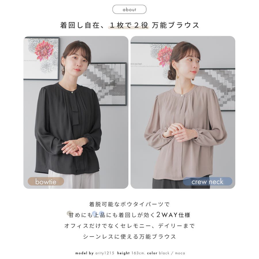 着脱可能なボウタイパーツで甘めに上品にも着回しがきく2way仕様
